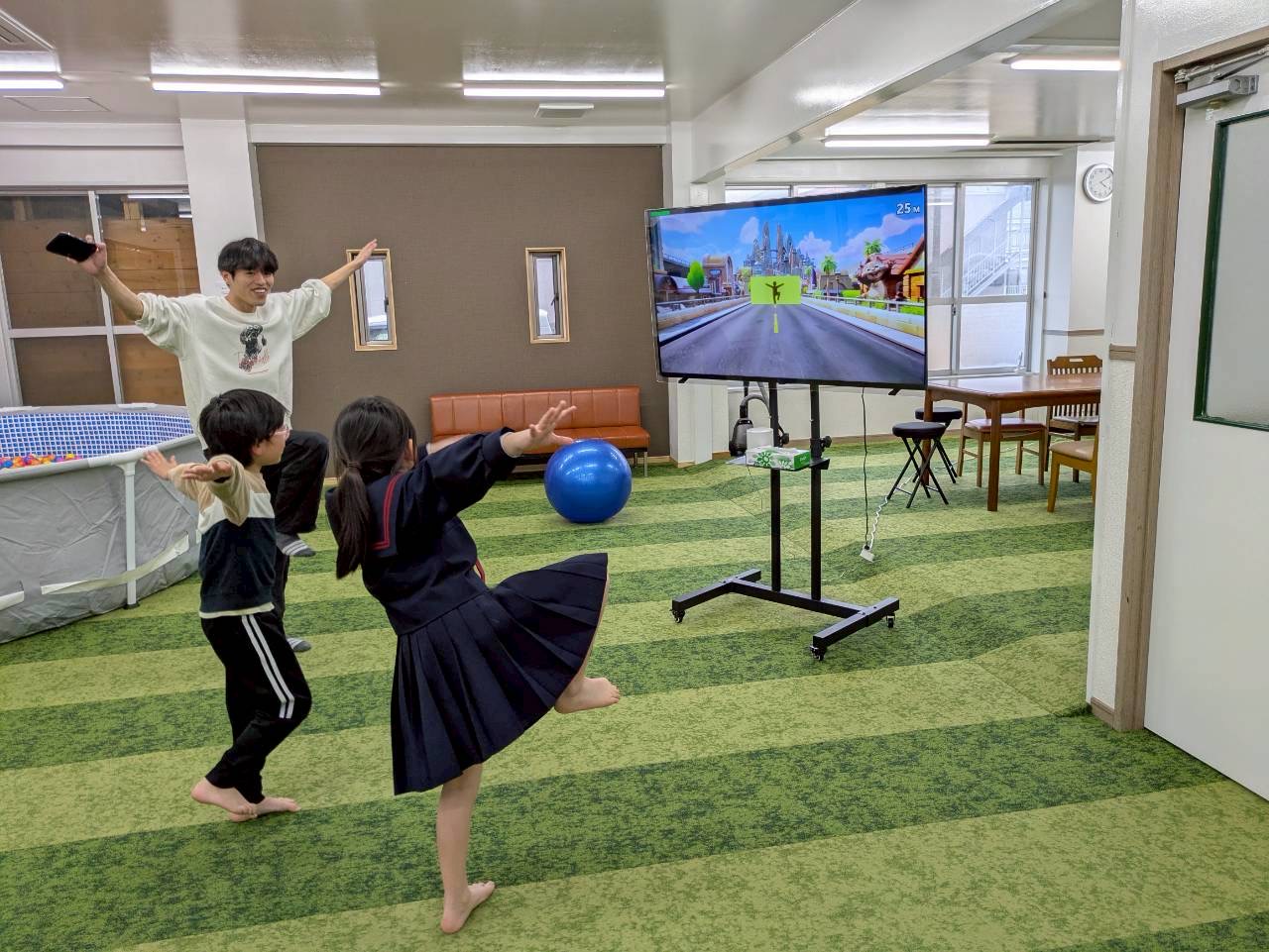 ・映像に合わせてジャンプや避ける、ポージングなどさまざまな動きを行う