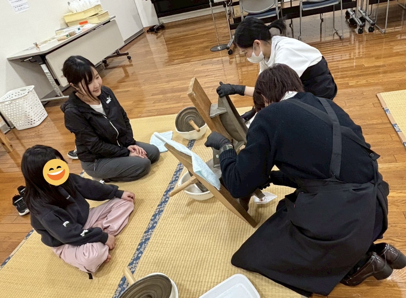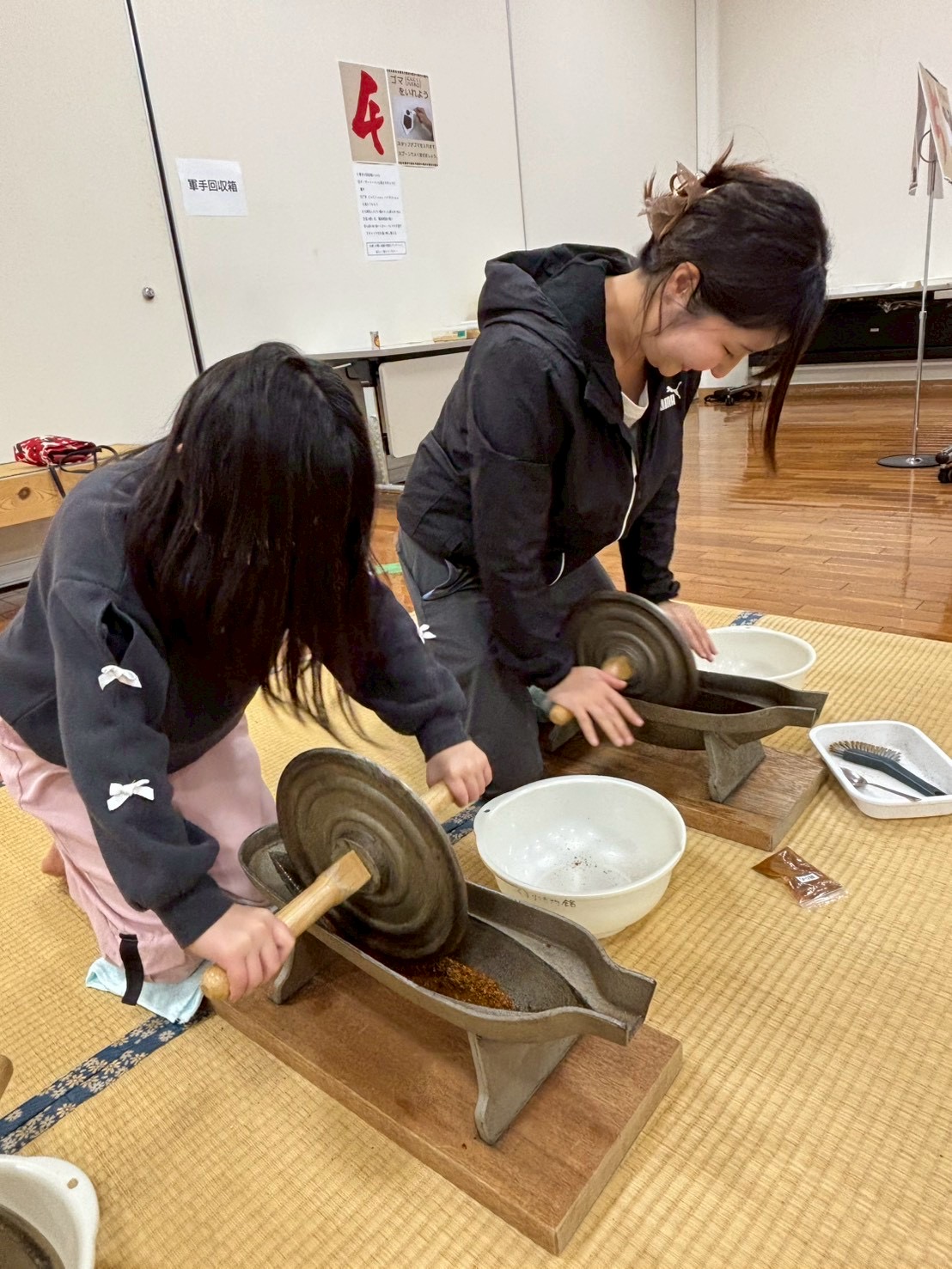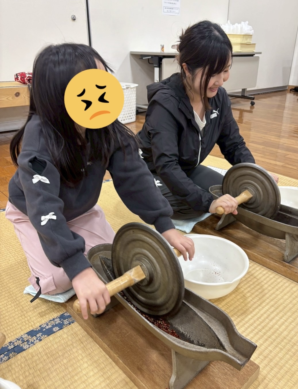 薬研体験!このときすでに「重たい…」ともらしていましたが、後半でさらにそれを痛感することになるとは、、🫨