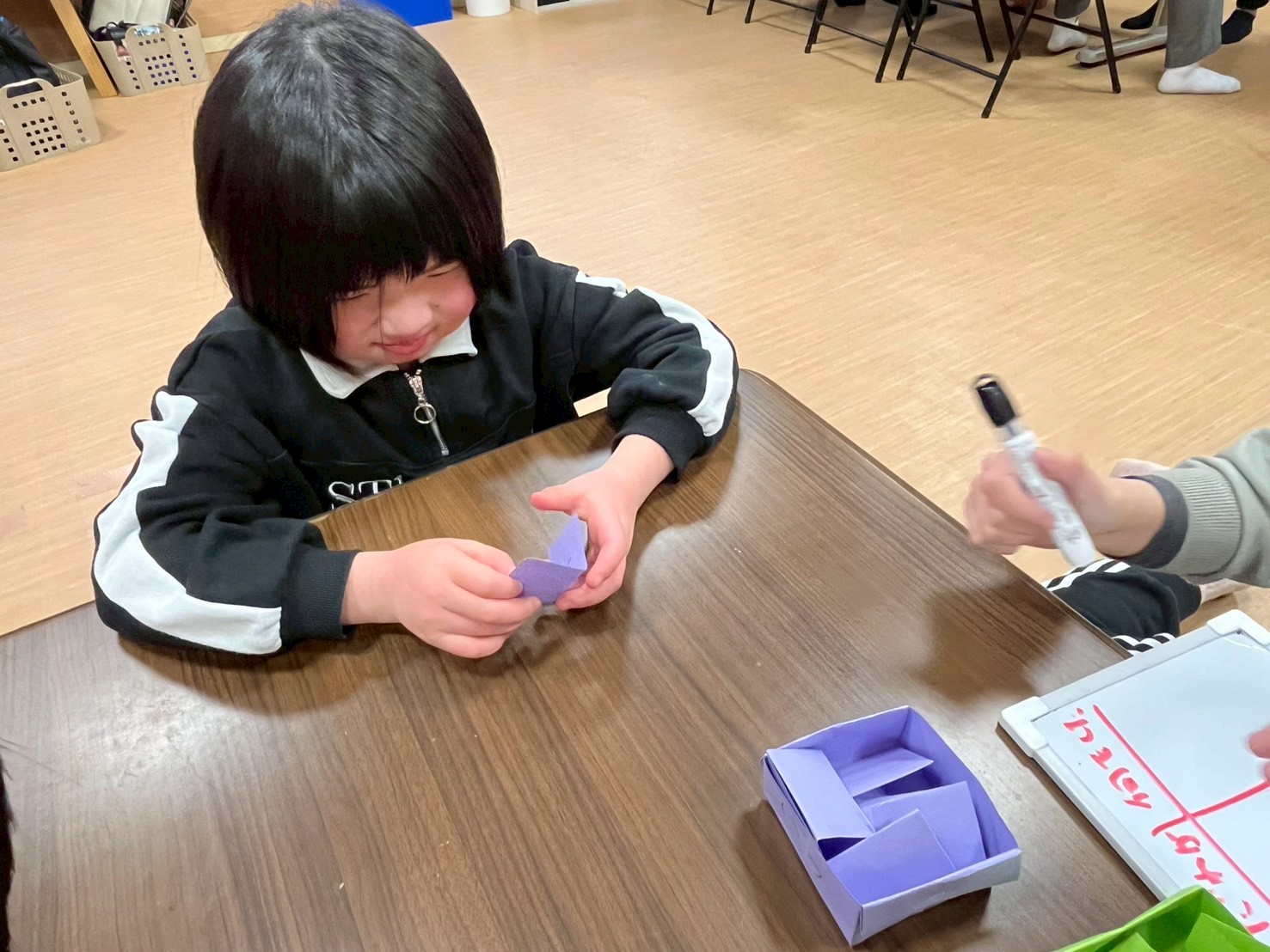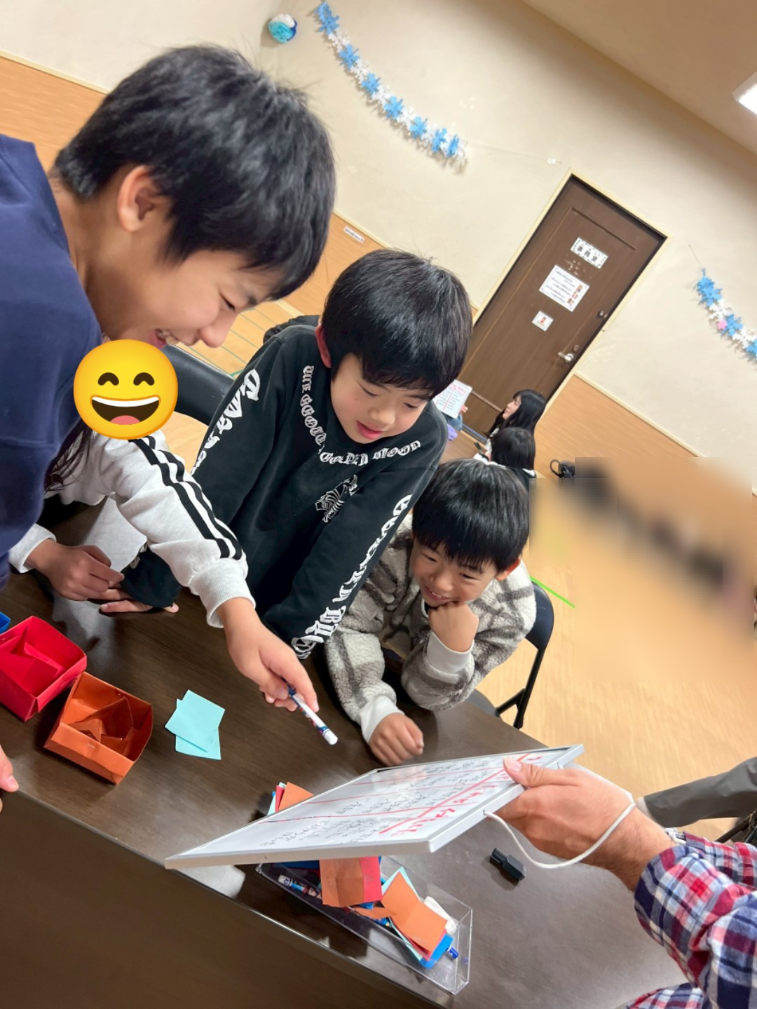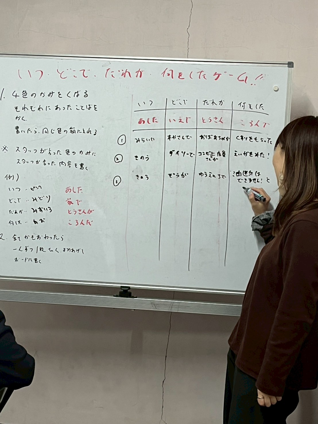 紙に、それぞの指示の書いて箱に入れ、1枚ずつ取り出して、ホワイトボードに書いて行きました🙋