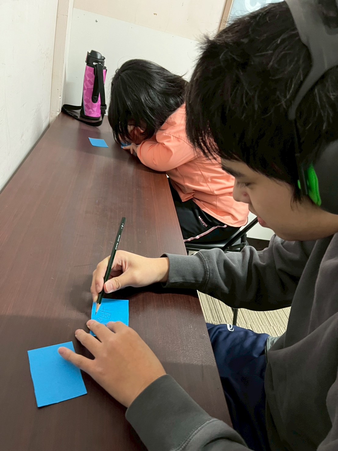 書き出したのを見て、一番面白い文を皆で1つ選び、発表しました🙋どれがいいか、会議中🤔