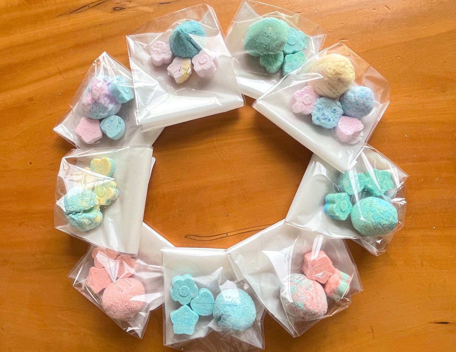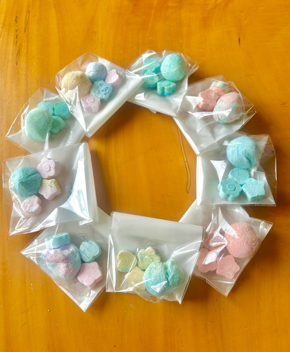 オマケ😍先週土曜日に作った、シュワシュワバスボム🛁を固まったので、袋に入れて可愛いくラッピング🎁して、土曜日に来ていた子どもに持ち帰りしました✨