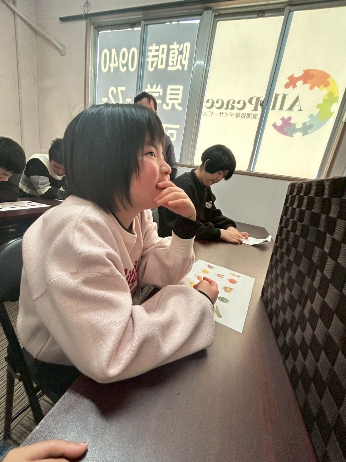 もう一つのグループでは、スタッフが説明役となり、子どもたちが配られた紙の中から答えを選ぶゲームを行い、こちらも人の話をしっかり聞いて考えることを大切にして取り組みました👂✨