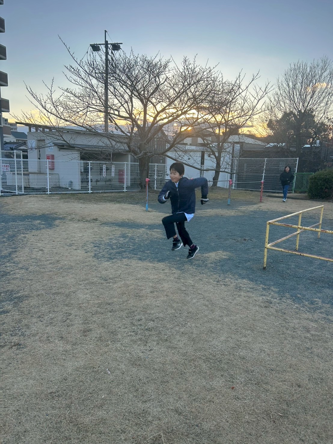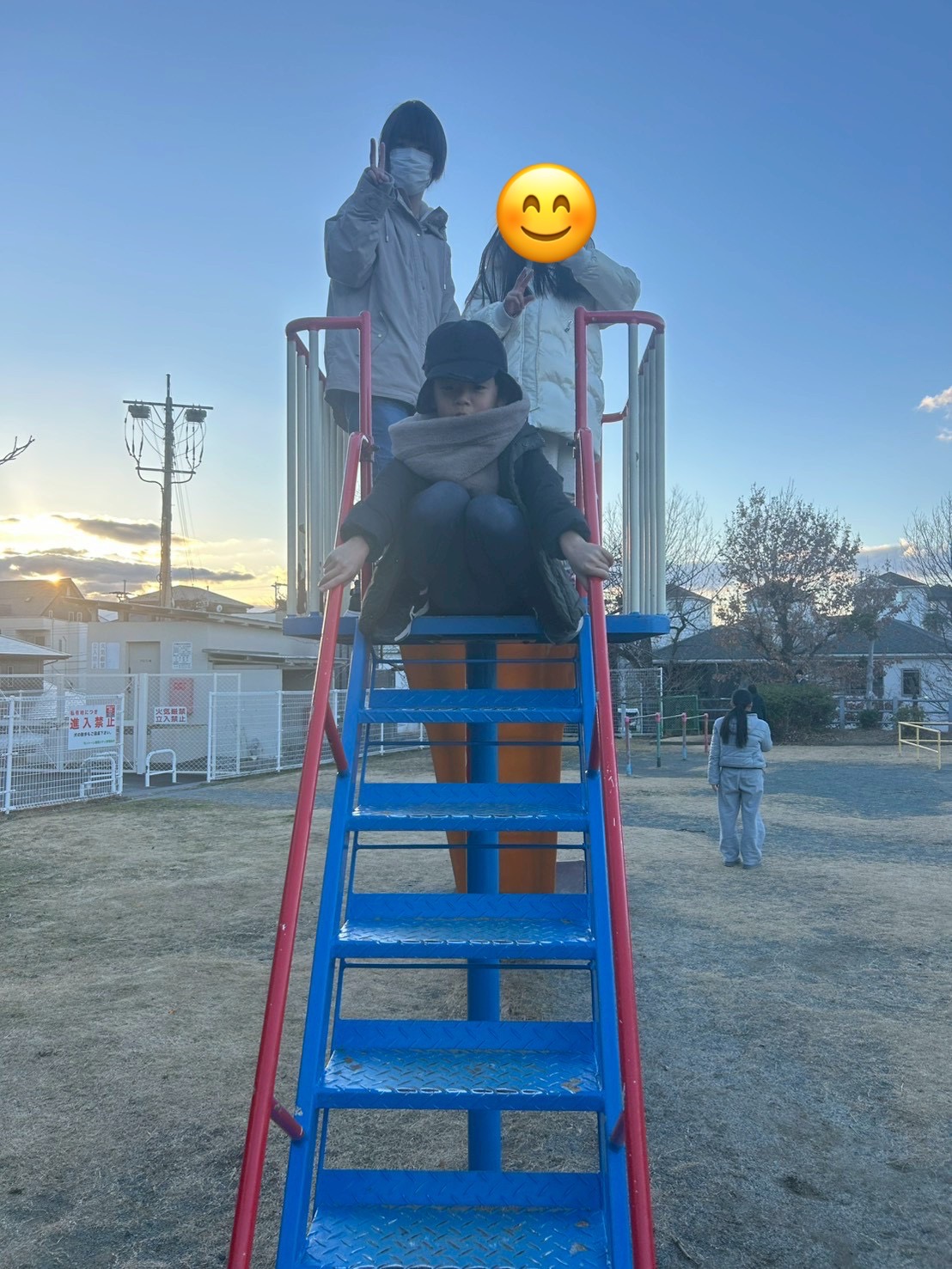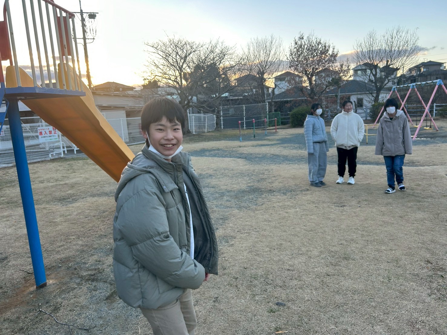 公園組では、鬼ごっこをしたり夕暮れの中で元気いっぱい体を動かして遊ぶ姿が見られ、寒い中でも笑顔がたくさんあふれていました😊❄️