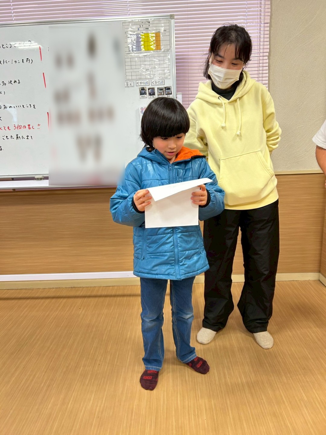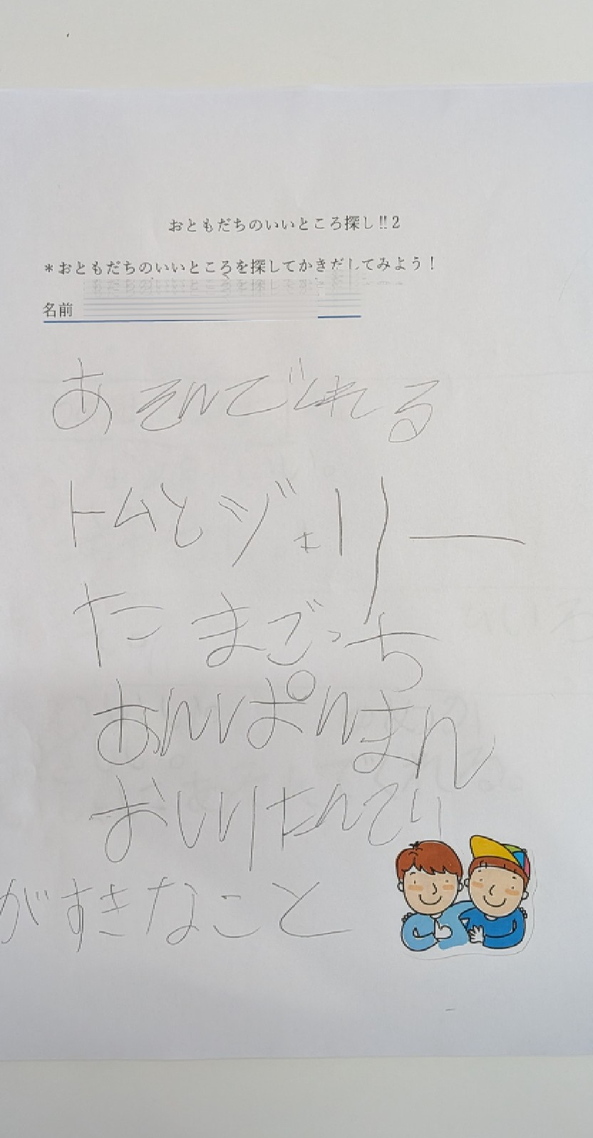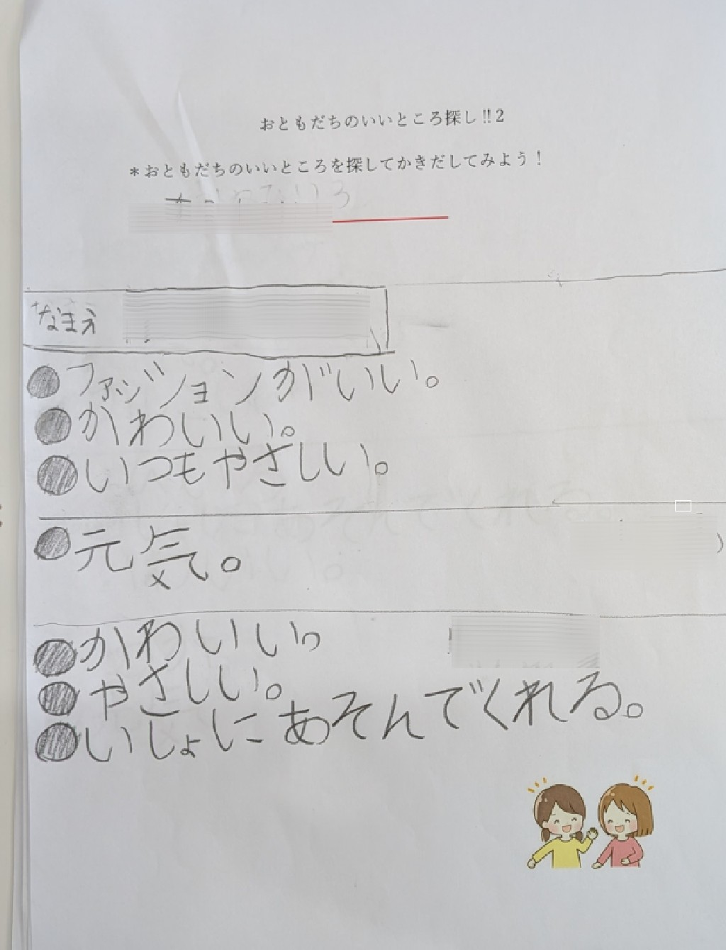 スタッフが再度説明しながら、友達の良い所を紙に書いてました😊