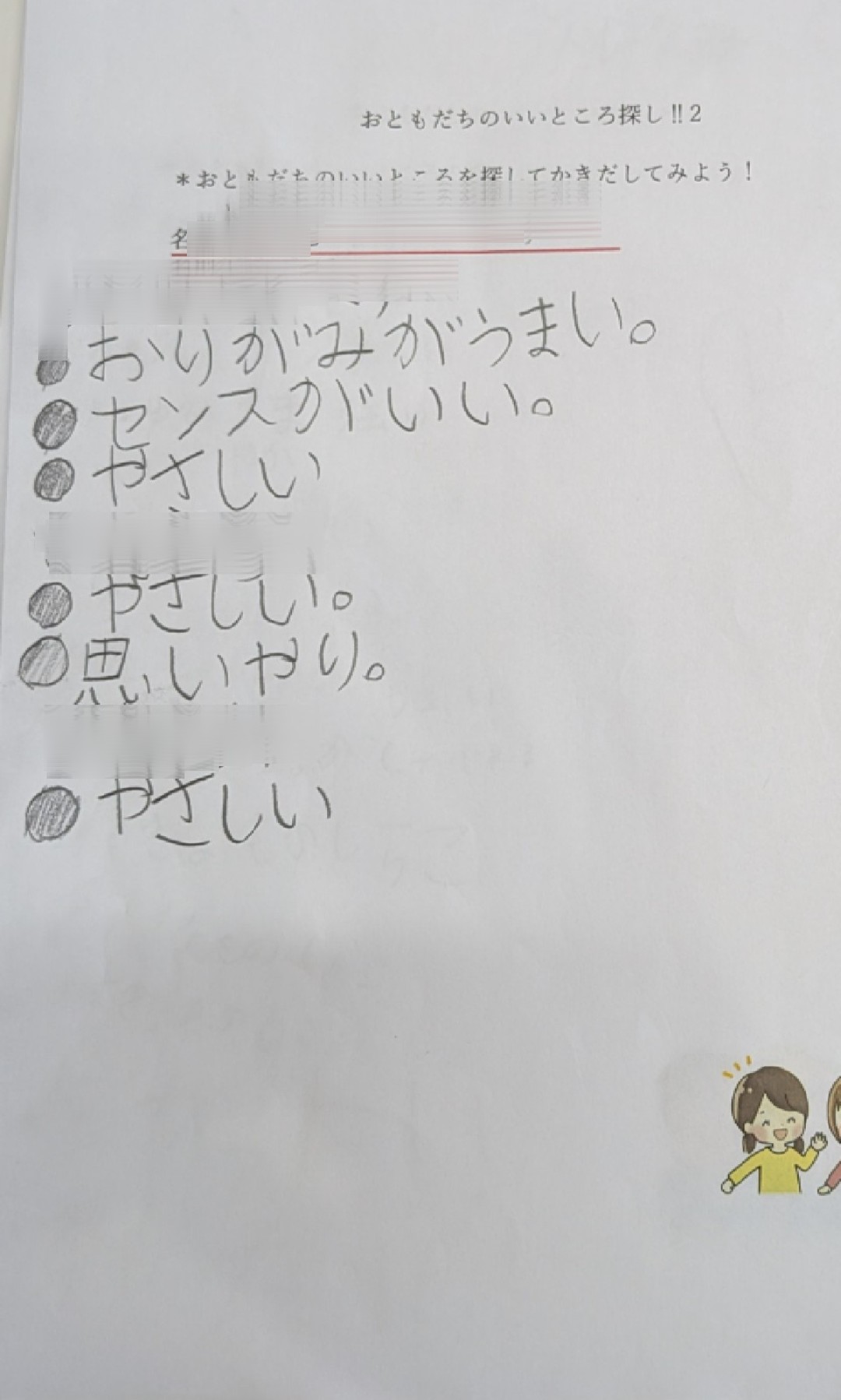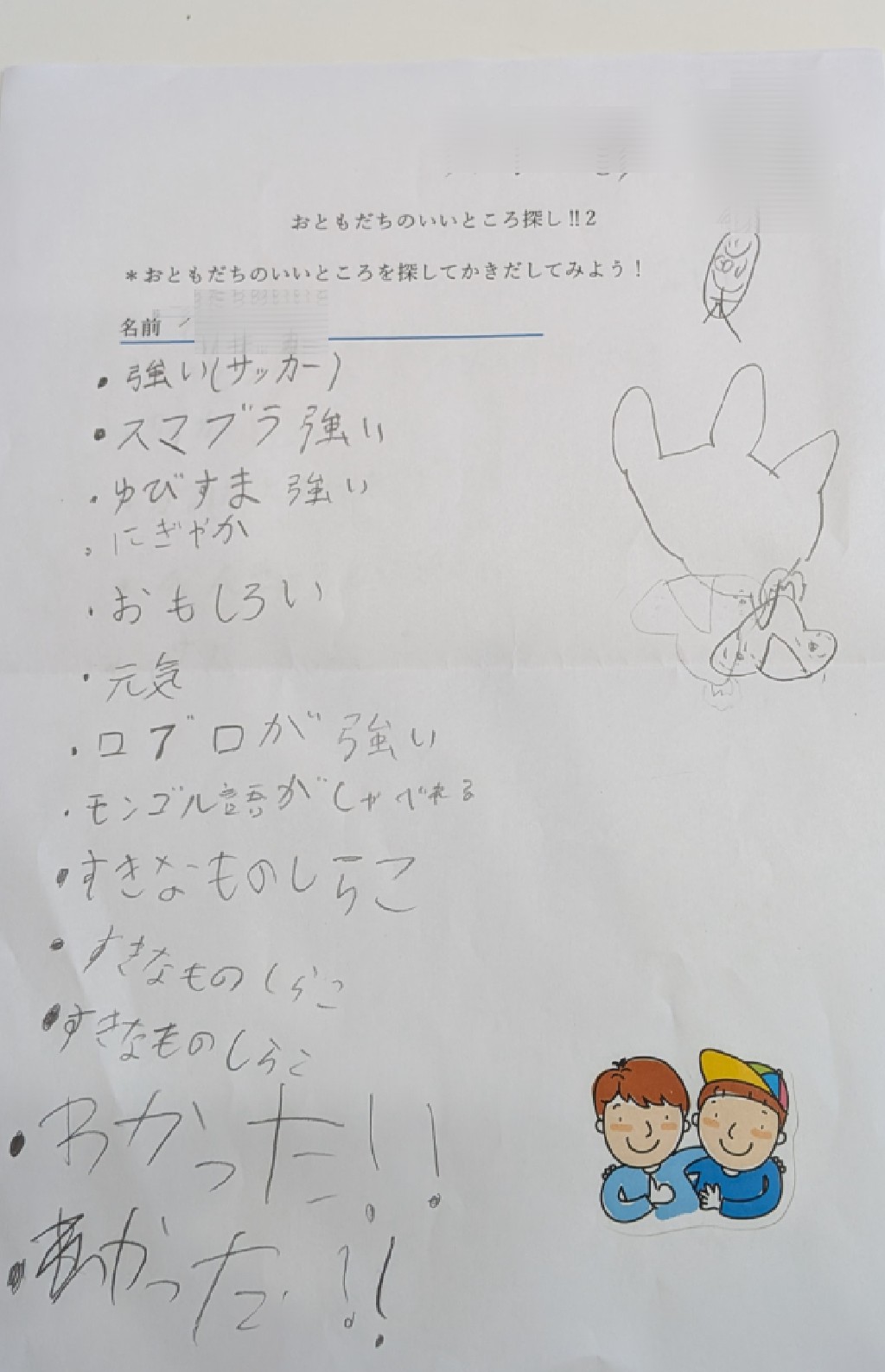 皆、友達の良い所を見つける事が出来て良かったです✨自分になくお友達の良い所を自分の良い所になれるようになると良いですね😉
