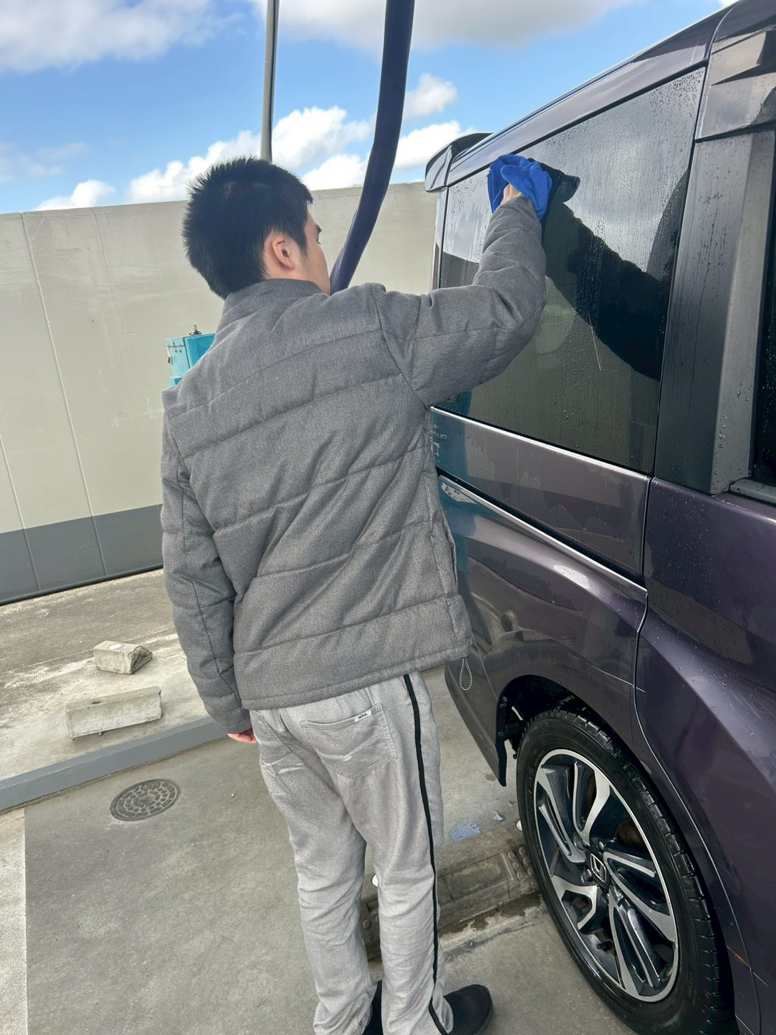 スタッフと一緒に車🚙の洗車に行き、お手伝いをして、素晴らしい✨👏