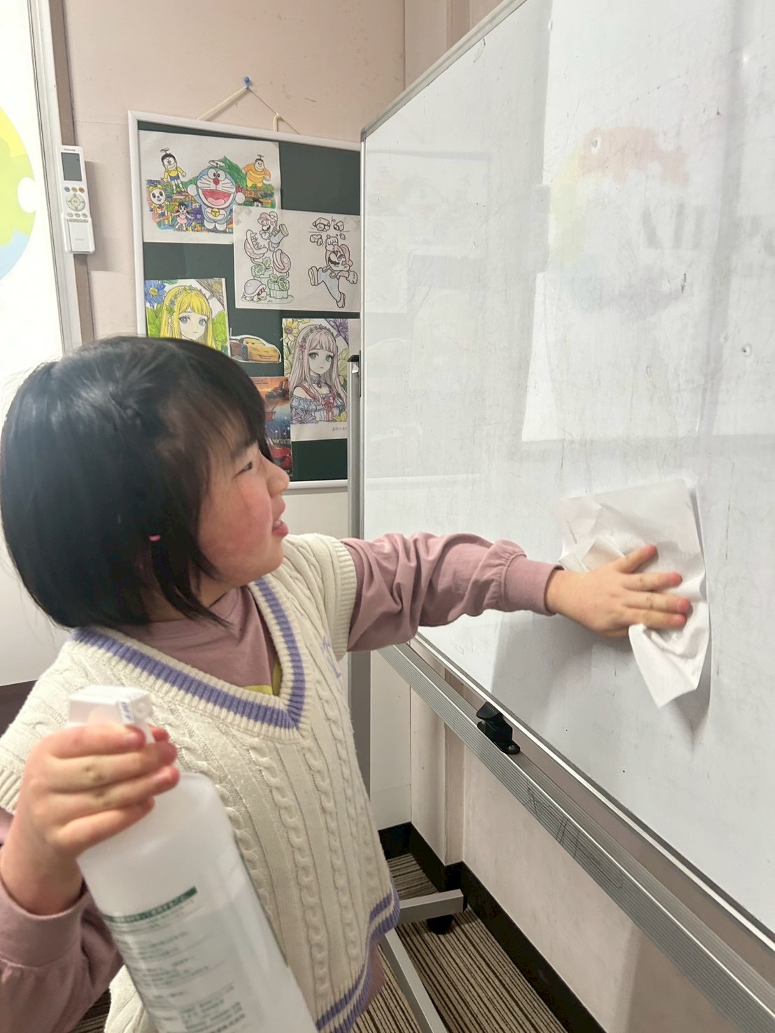 掃除機を丁寧にかけたり、窓を一生懸命拭いたりと、どの子もとても真剣に取り組んでいました👏