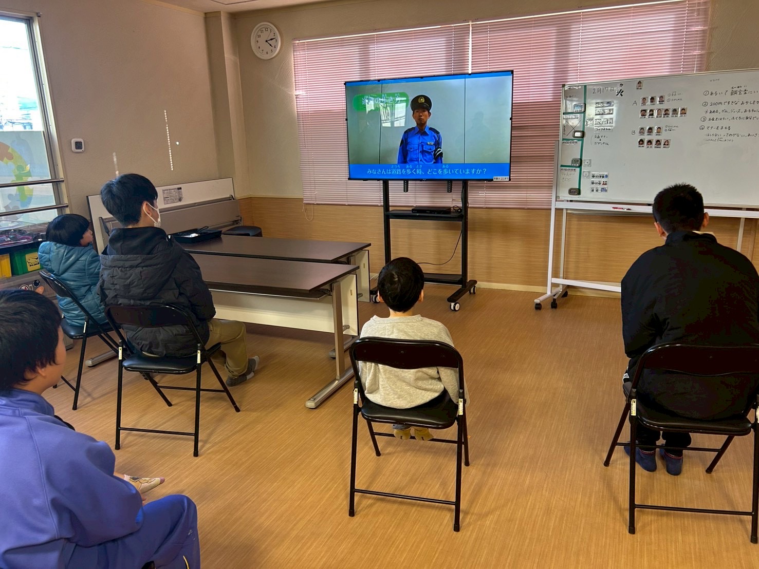 駄菓子屋さんに出発する前に、まずは動画を使って交通マナーの学習📺を行いました。