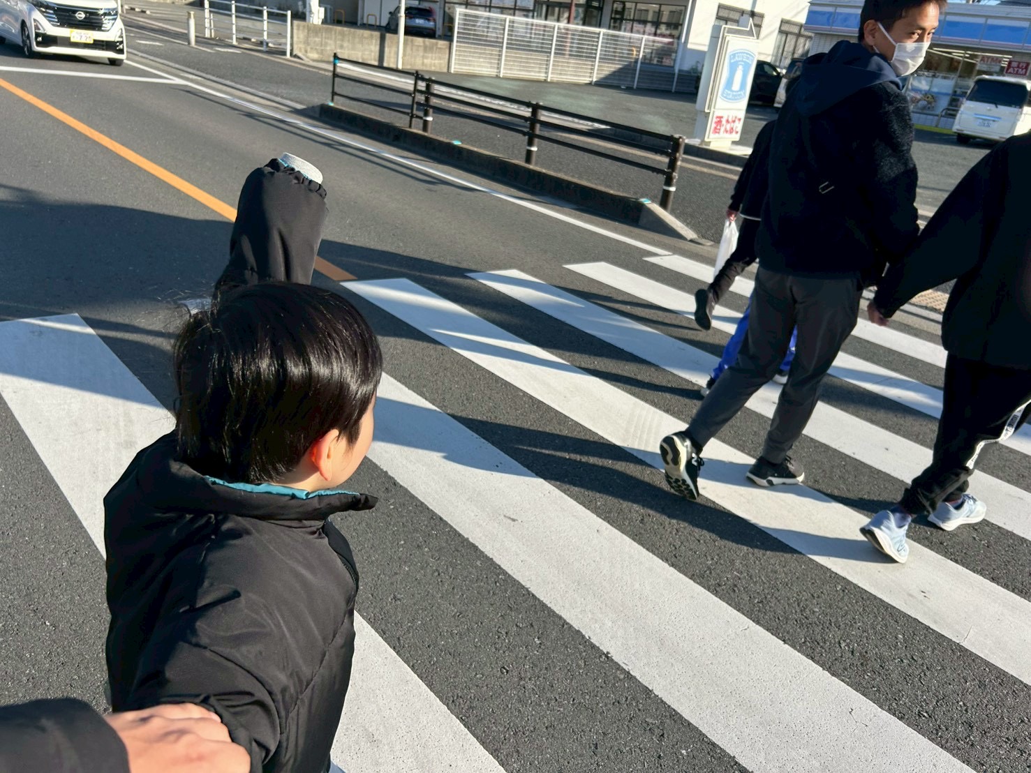 今回はオールピースの近くにある駄菓子屋さんまで歩いて行くことにしたため、せっかくの機会ということで、交通マナーを改めて学ぶ時間も取り入れました😊