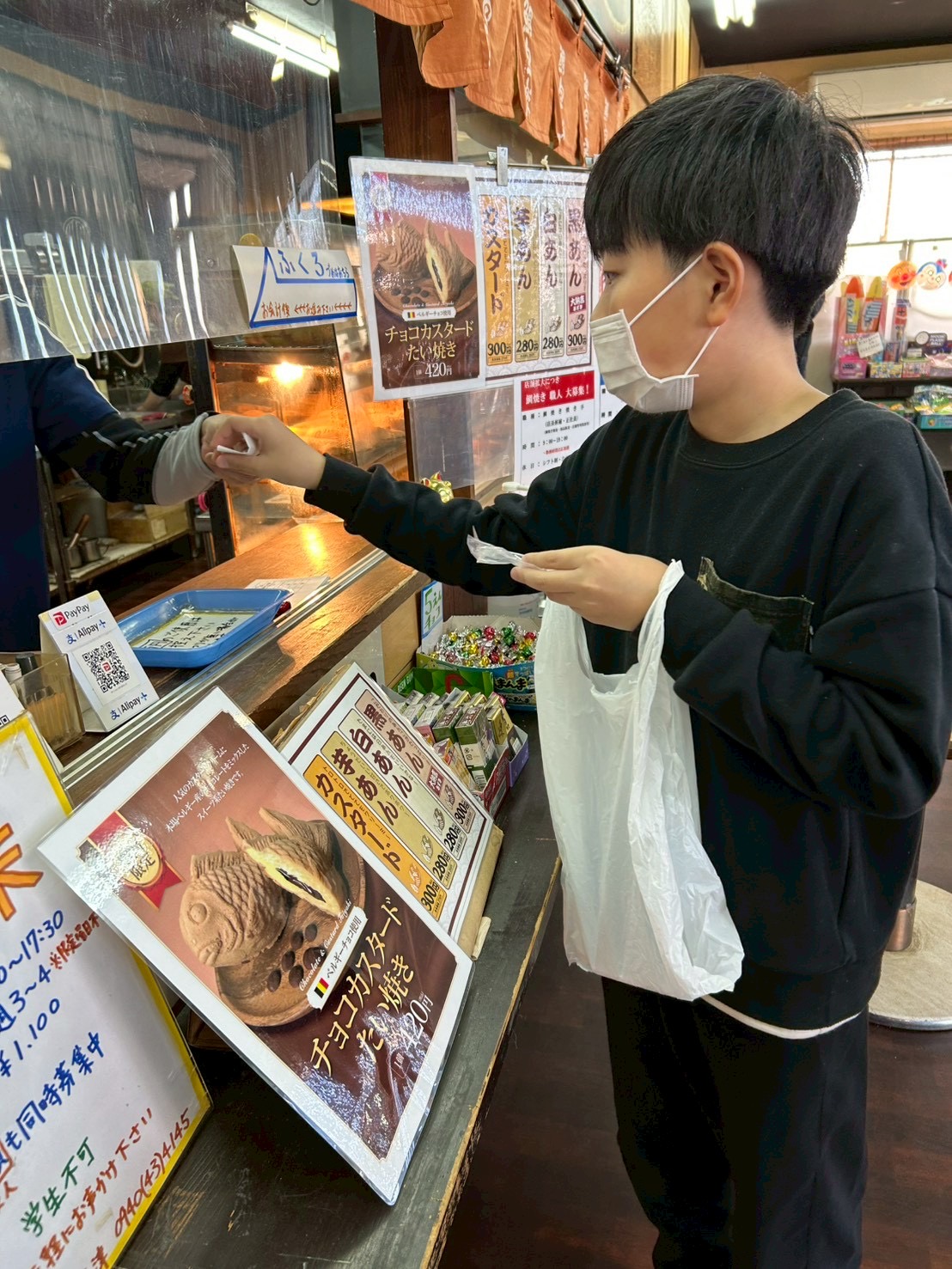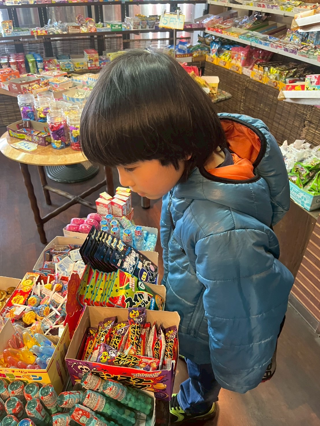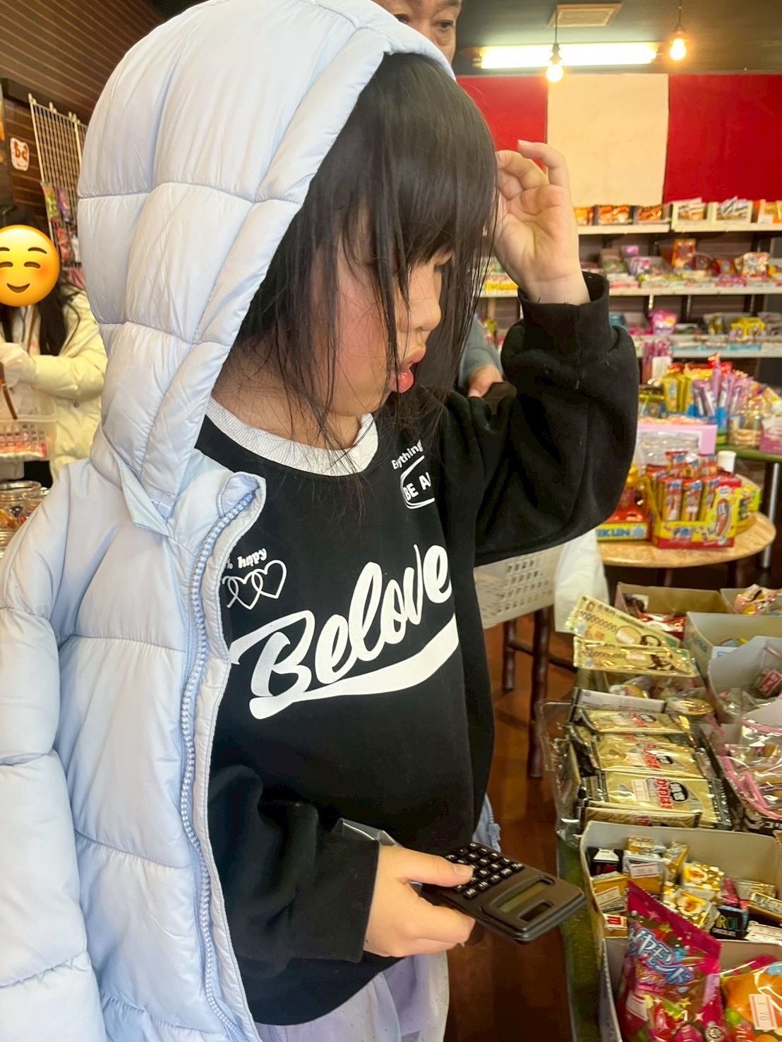 駄菓子屋さんでは、電卓を片手に🧮200円の予算内でお買い物をしました。