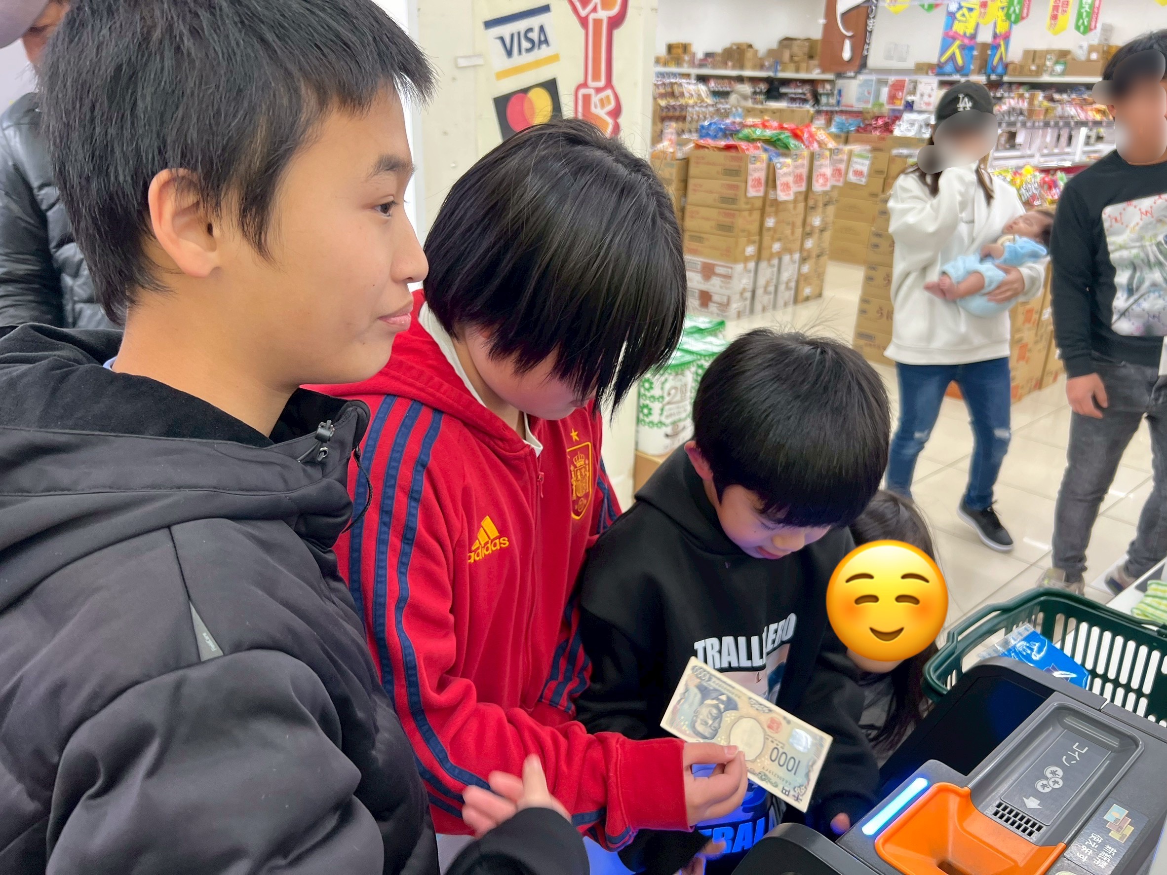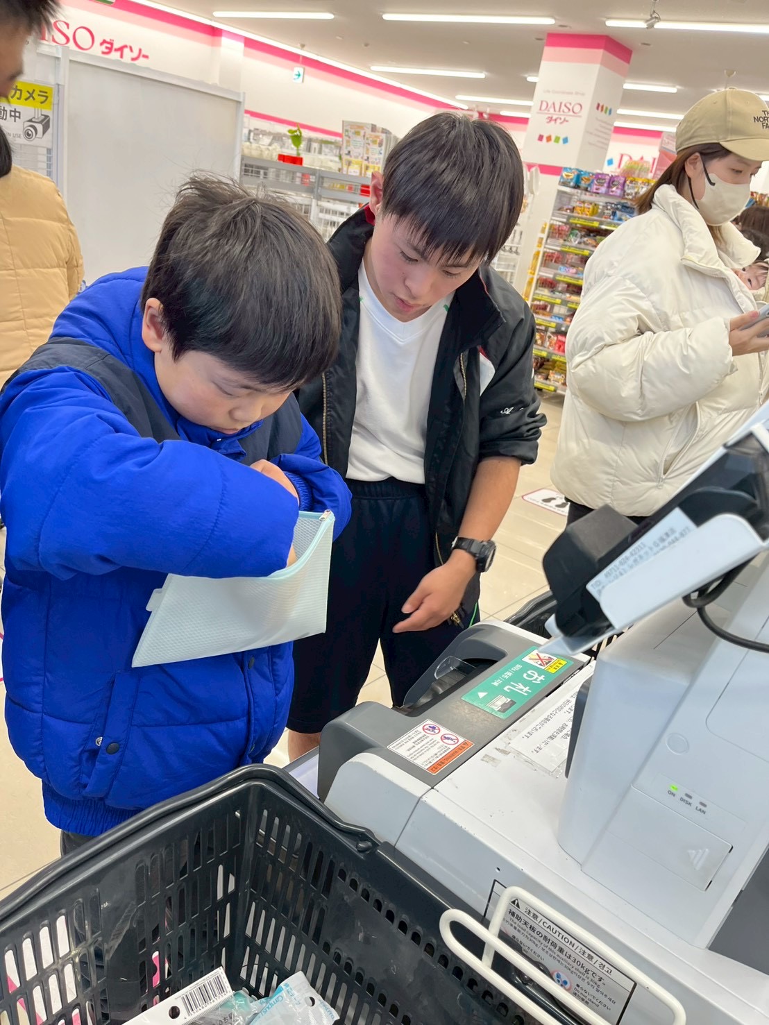 レジでは商品を持って行き、お金を支払い、レシートを受け取り、商品を袋に詰めるまでの一連の流れをしっかり意識して行うことができています👏✨