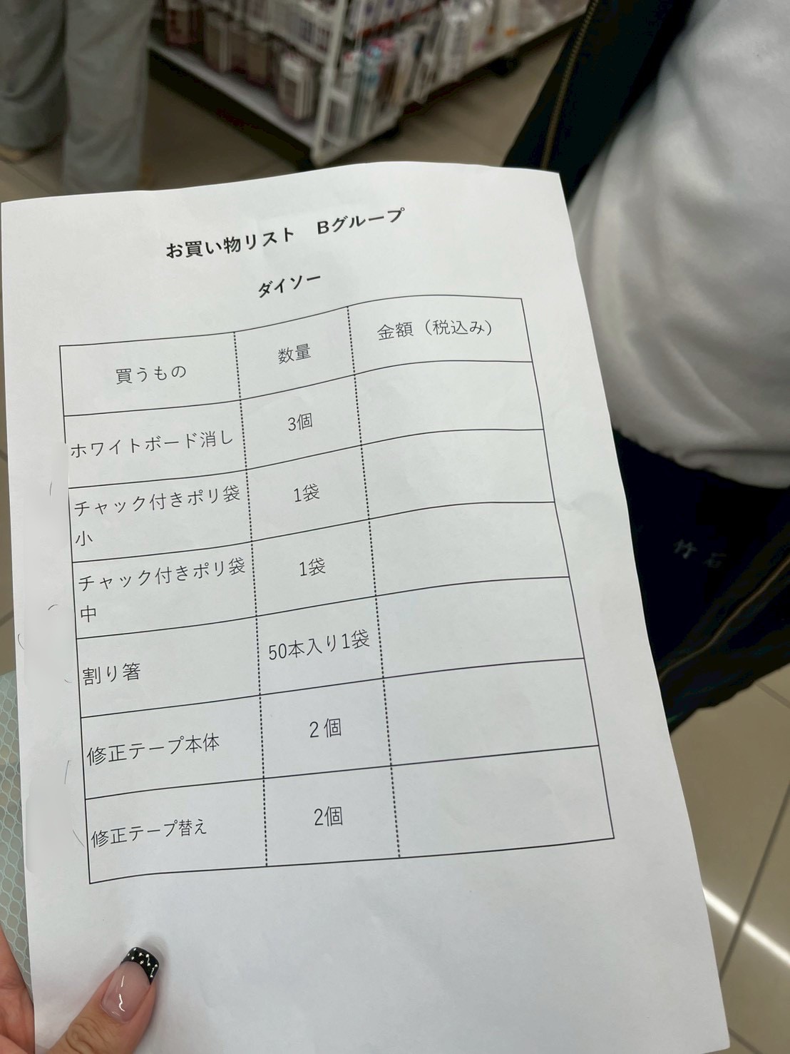 事前に紙に書かれた買い物リストを確認し、その中にある商品を探し、予算内で購入することを目標に取り組みました✍️💰