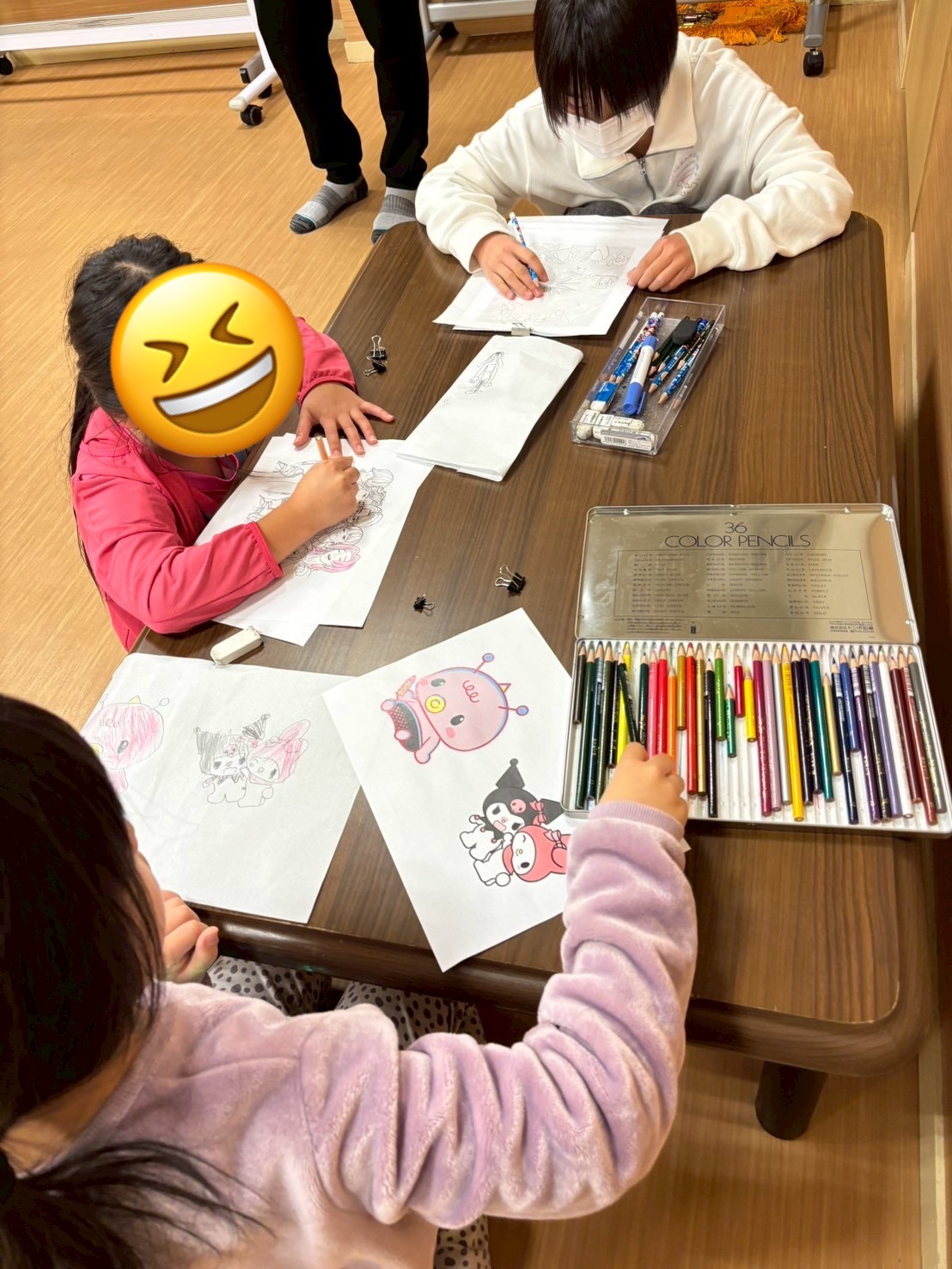 女の子たちは塗り絵や写し絵に取り組んでいました🙂↕️🌿