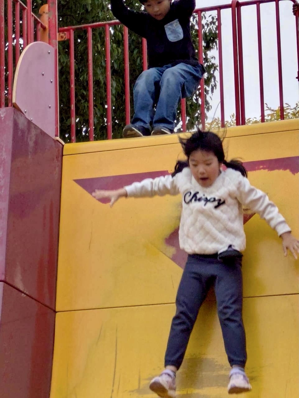 この滑り台🛝、滑り出しがほぼ垂直でした😆