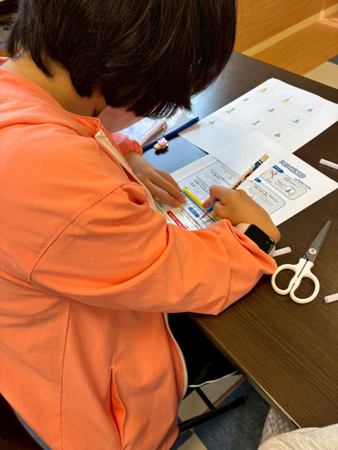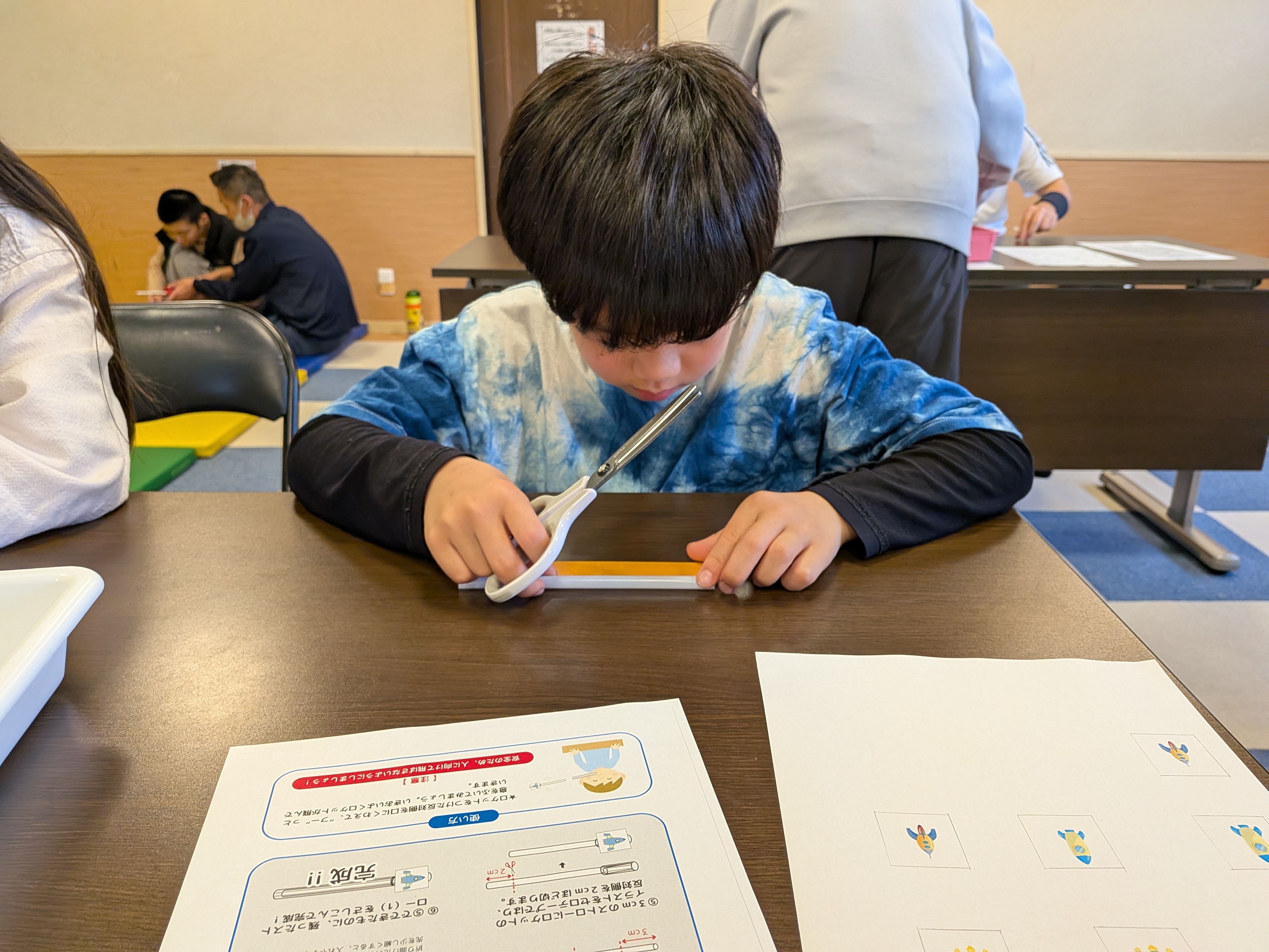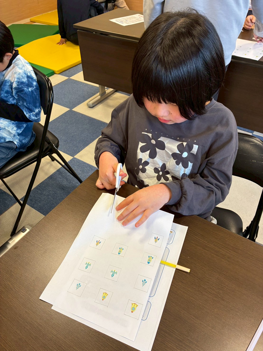 🤔こちらは、測りながらそのまま切るようですね😊印をつける子どもやそのまま切る子どもそれぞれ個性が出たのが良かったです🙋