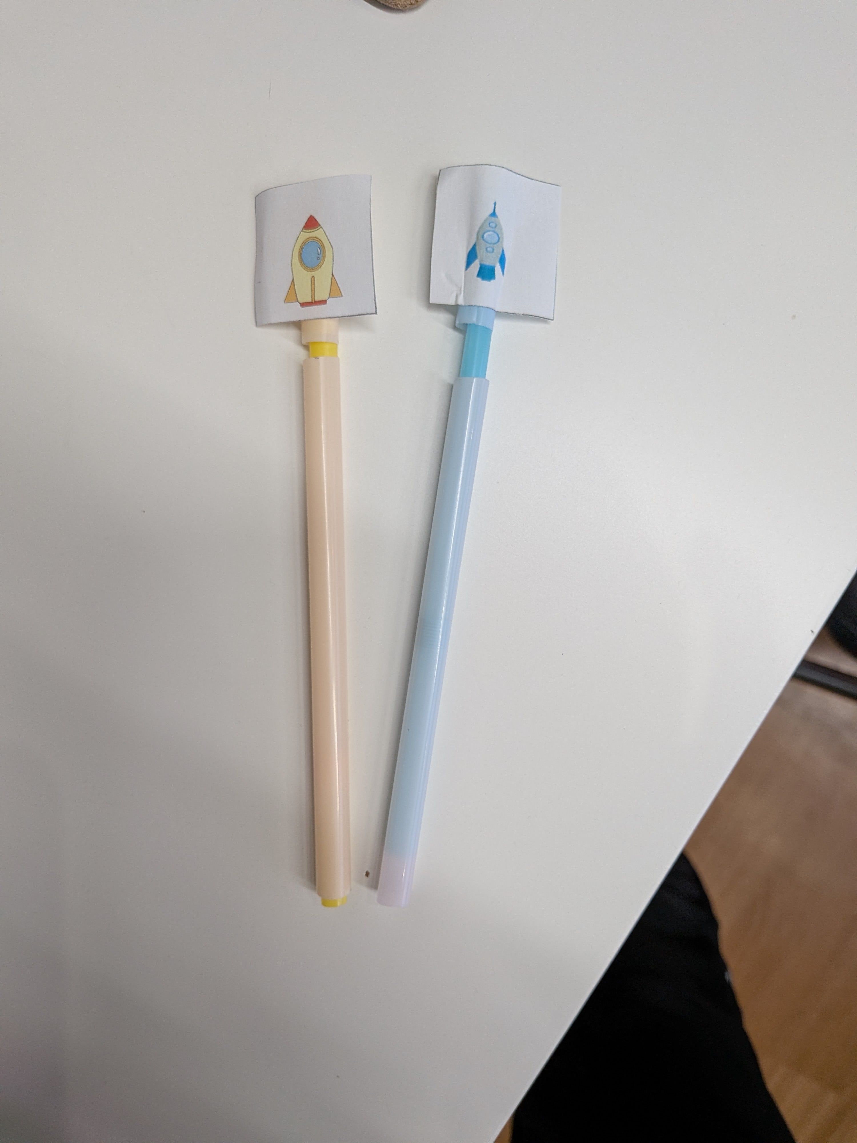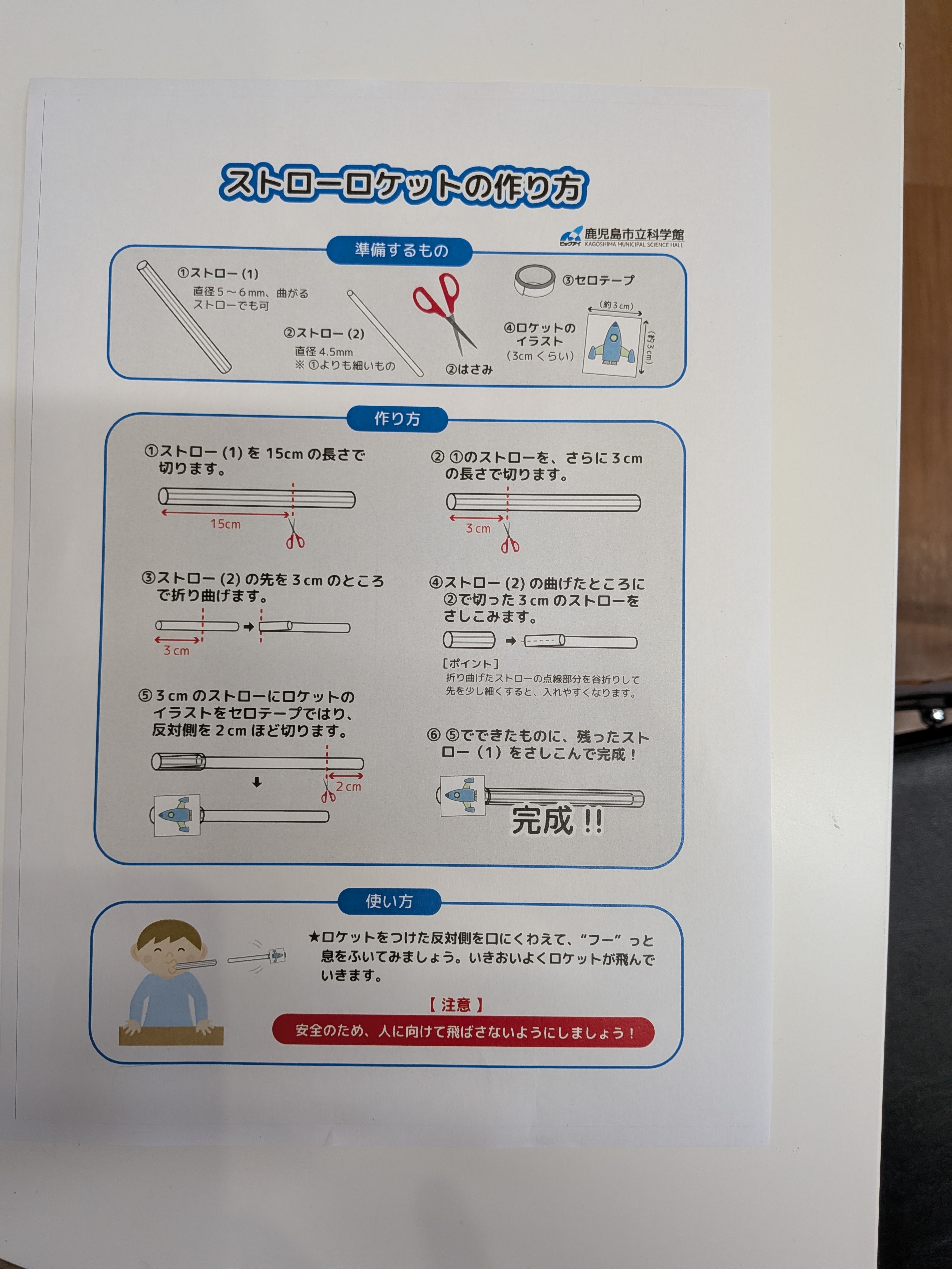 難しいのは、ロケット🚀を飛ばす時ですね…、皆苦戦してました😅コツは、ストローを咥えず思いっきりストローに向かって吹くですね😅低学年の子ども達は咥えて吹いてたので…🤣