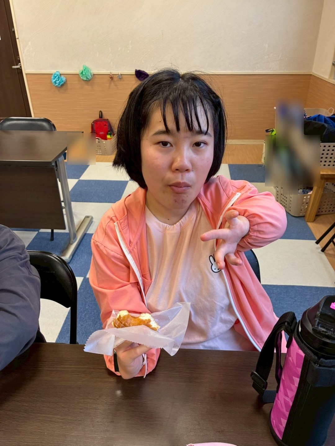 活動が終わり、ちょっとドライブ🚗がてらに、宗像サンリブの近くにある、ミスタード−ナツ店に行き、ド−ナツを1人1個購入し、事業所に戻って、食べました✨