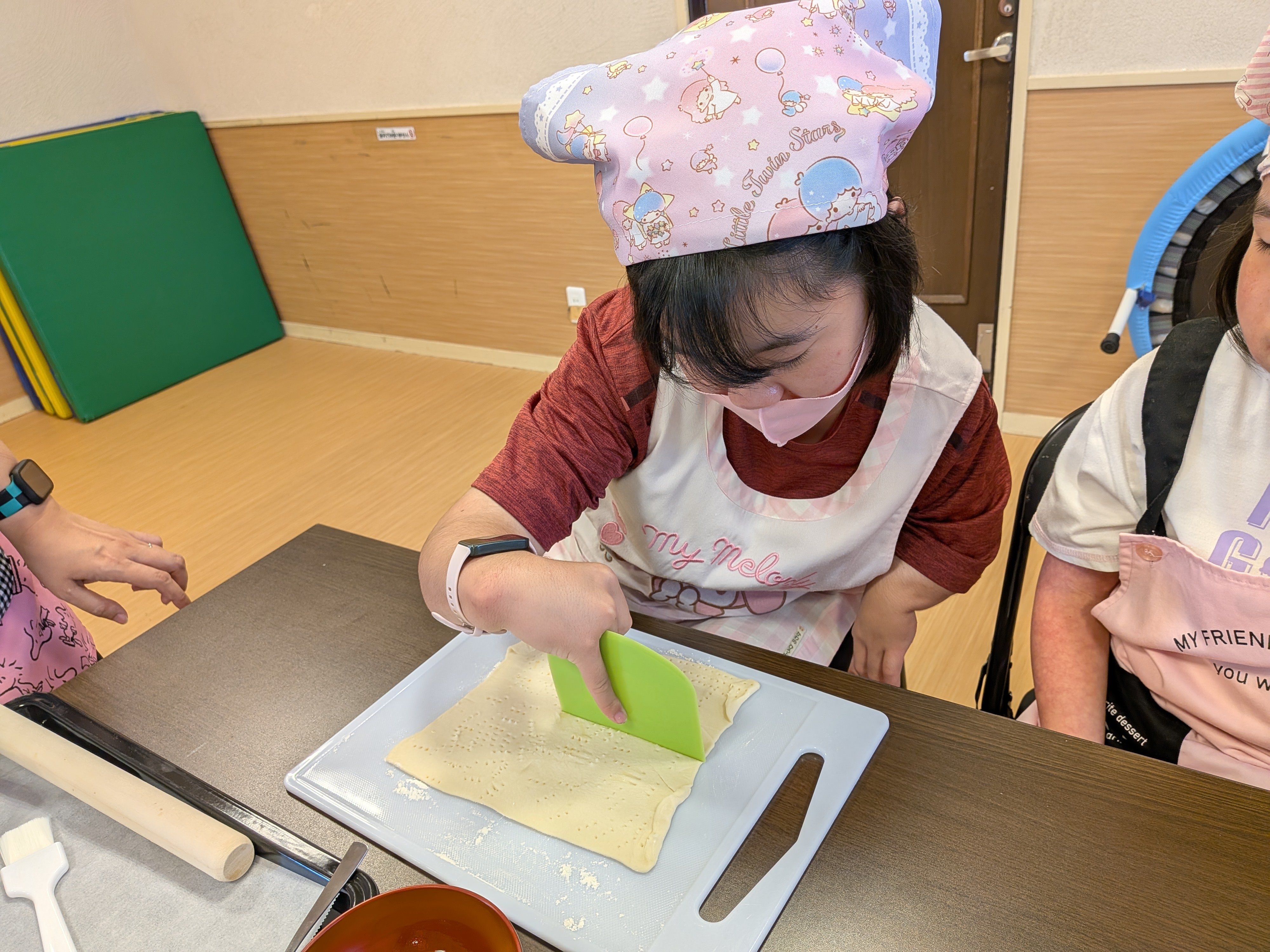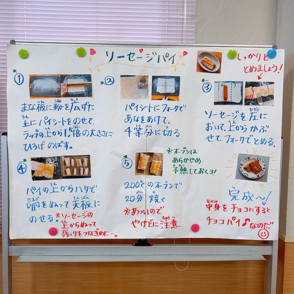 本日は、クッキングクラブで「ソ−セイジパイ🥧」を作りました✨