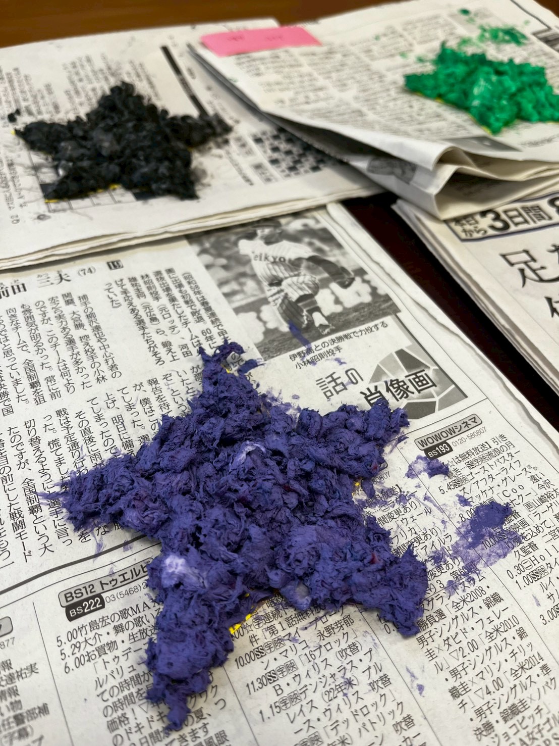 本日らアートクラブにてティッシュペーパーで作るテクスチャーアートに挑戦しました☝️✨