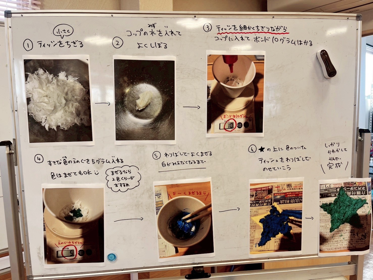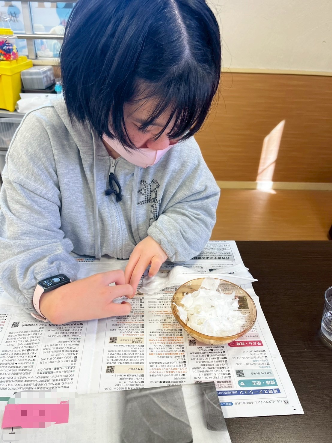 少し作業工程が多いですが、ティッシュを細かくちぎったり、水に濡らして絞る作業などたくさん手先を動かすことごできます☝️