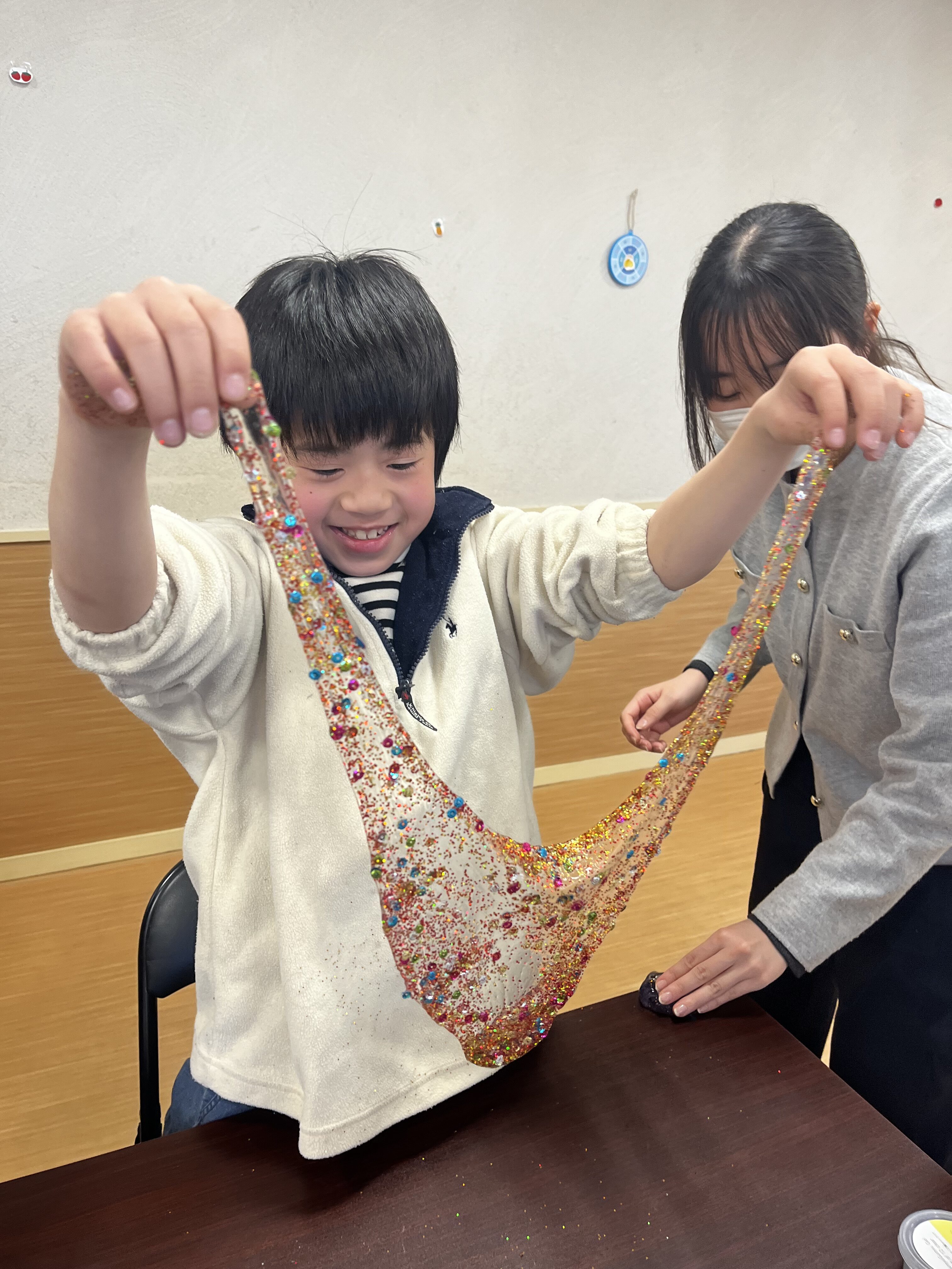 最後は友達とスライム交換会を実施して、お友達のスライムを触ってみたり、工夫した点を話したりしました🗣️