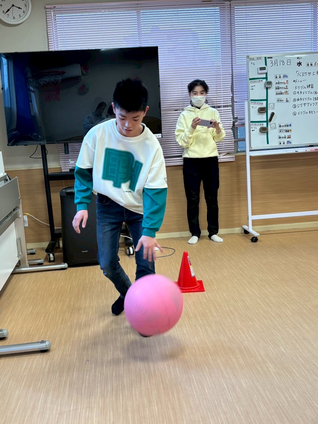 本日は運動療育の日という事で、来月の体育クラブに向けてバスケットボールの基本練習を実施しました✨