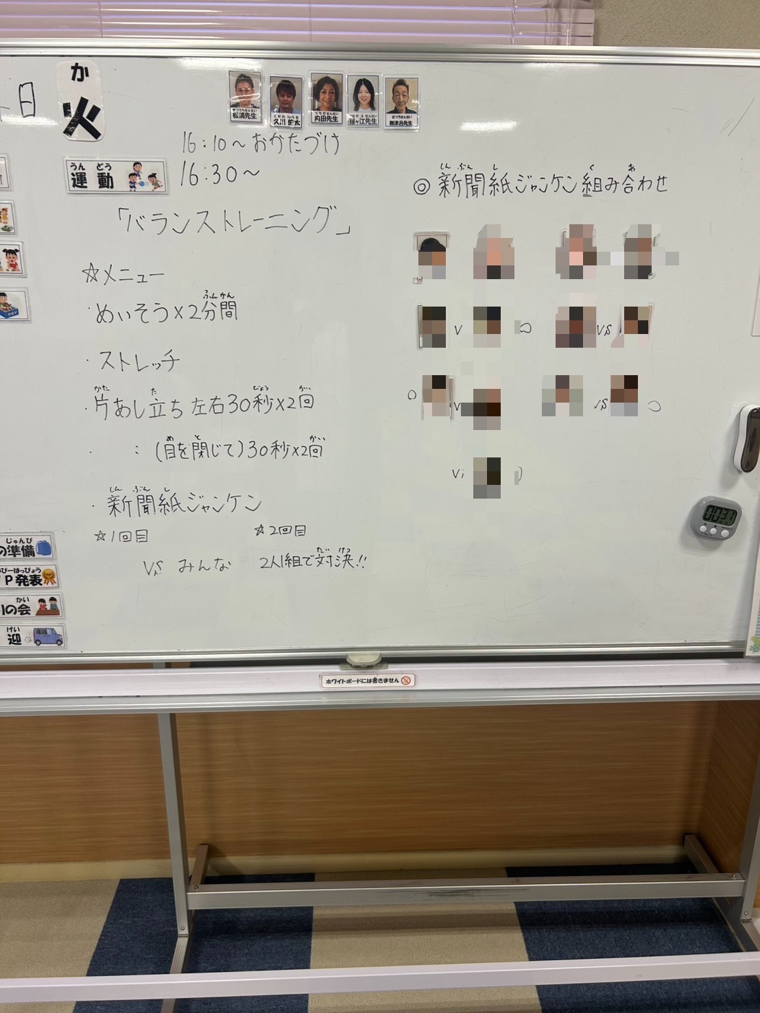 本日は運動の日でしたので、前回に引き続き体力テストを行う予定でしたが、あいにくの雨だった為本日はバランス能力を向上する為のメニューを実施いたしました🤲🔥
