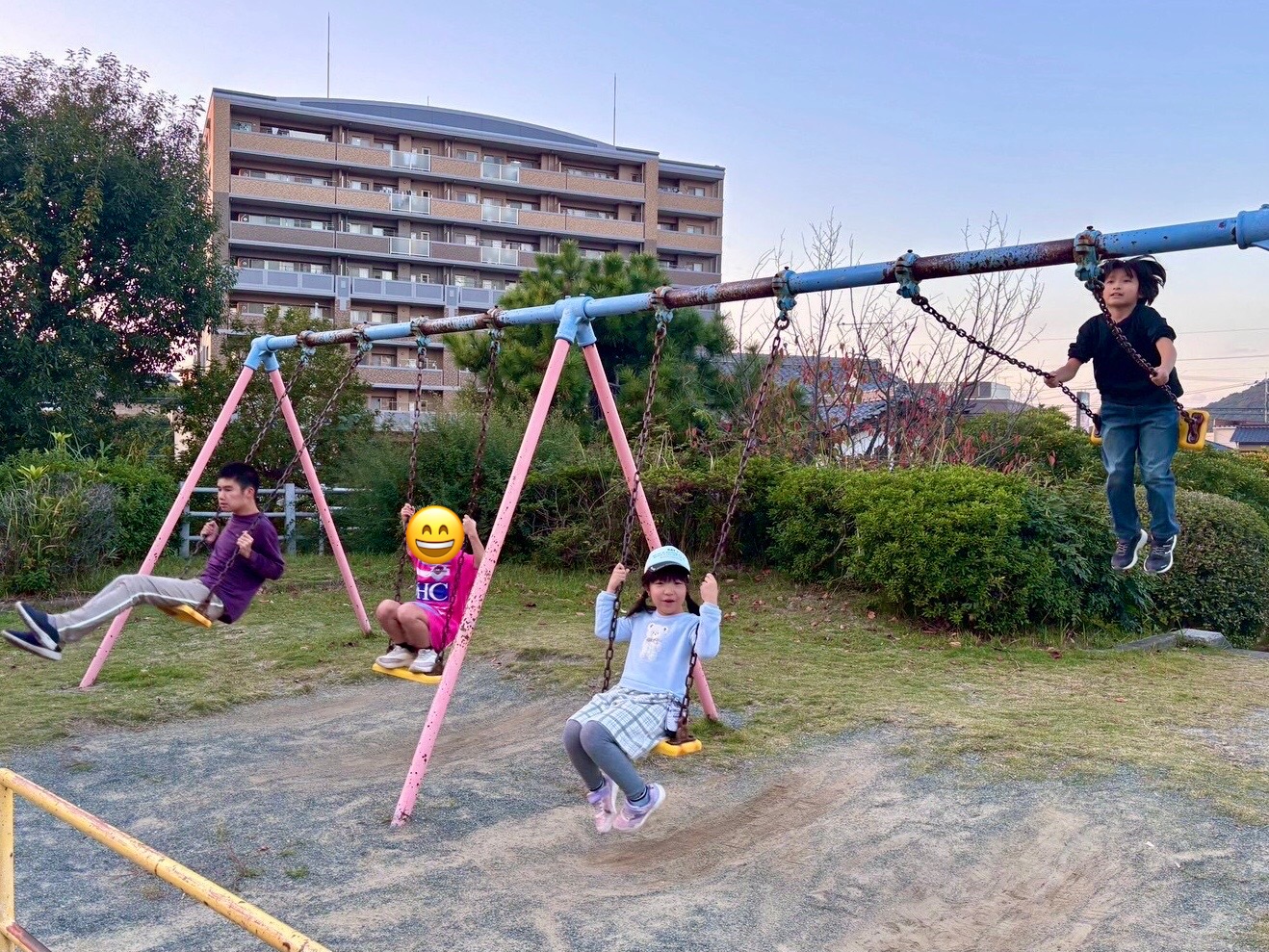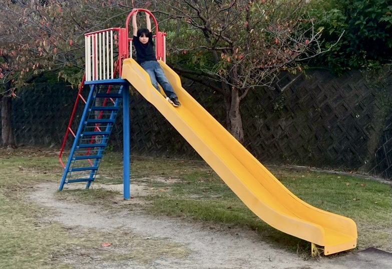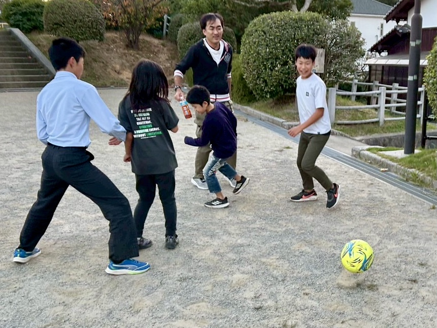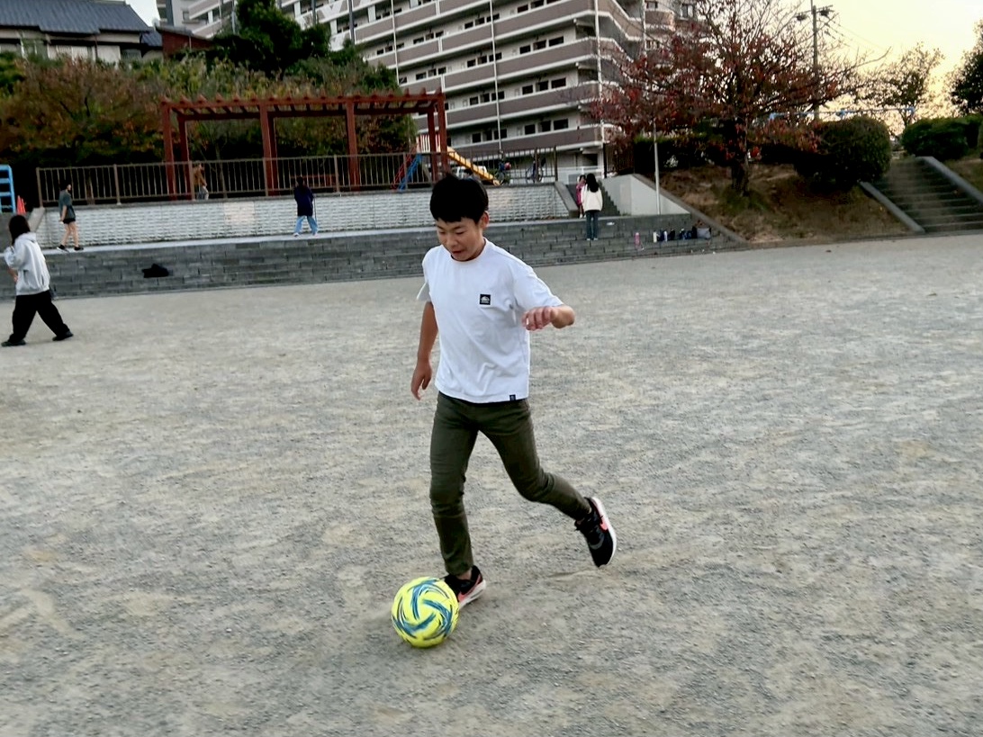 ので、近くの公園でサッカーや遊具で