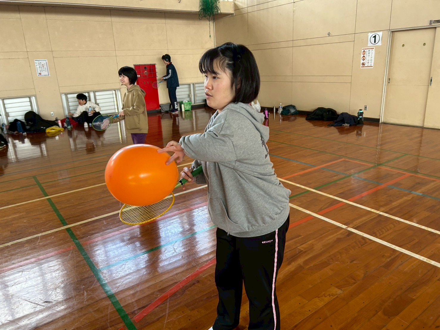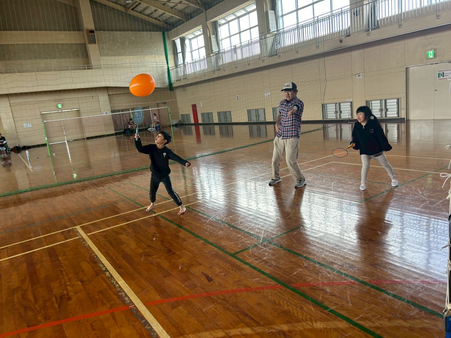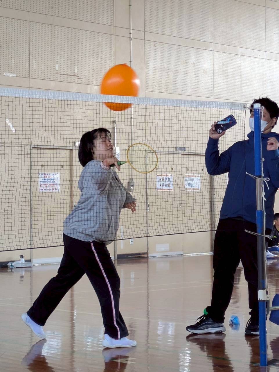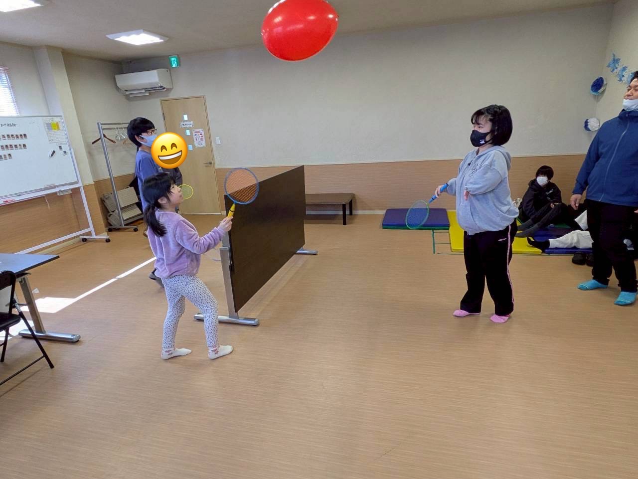 シャトルと風船を使いながら、基本動作を身につけました🙆♂️