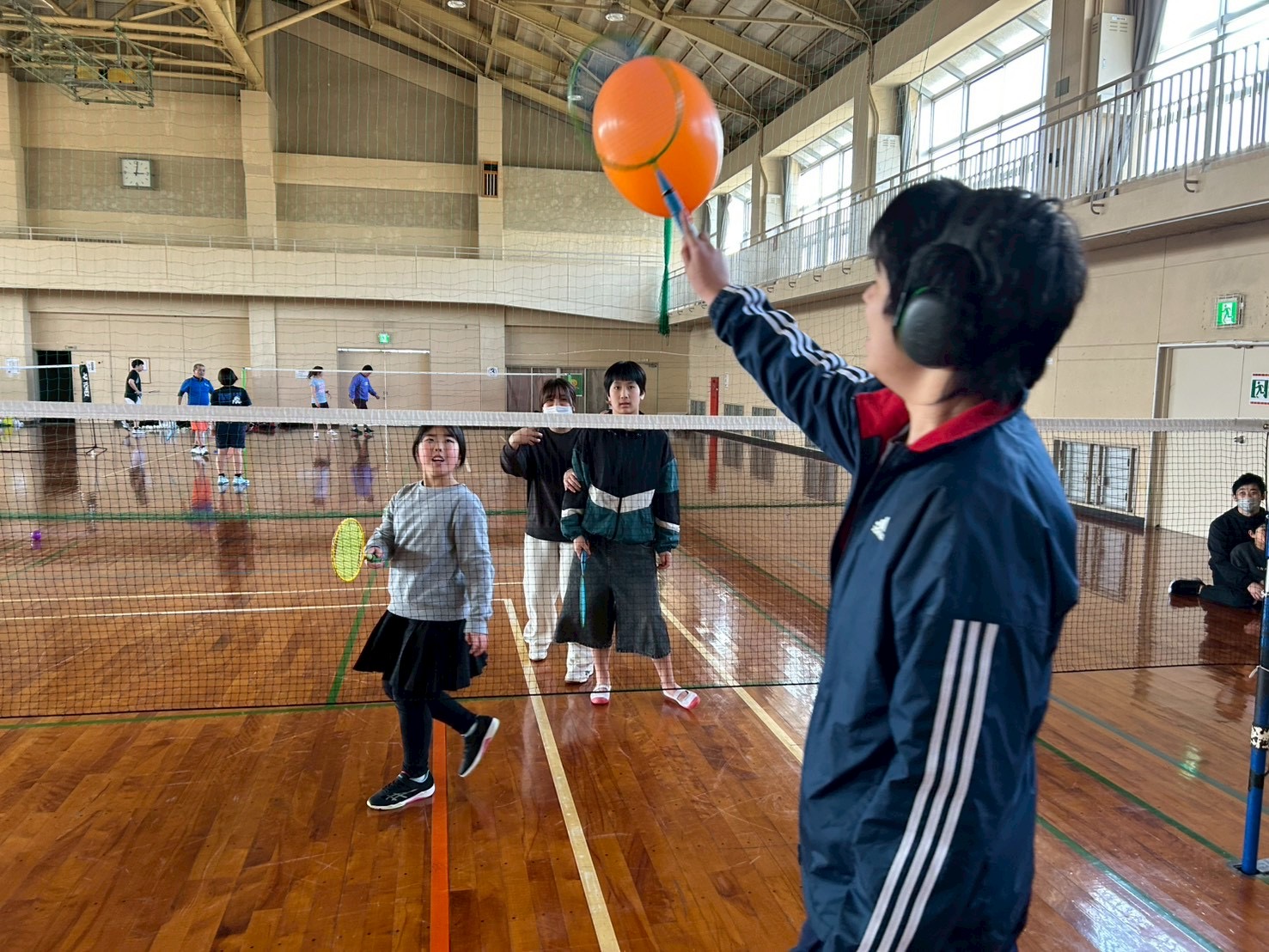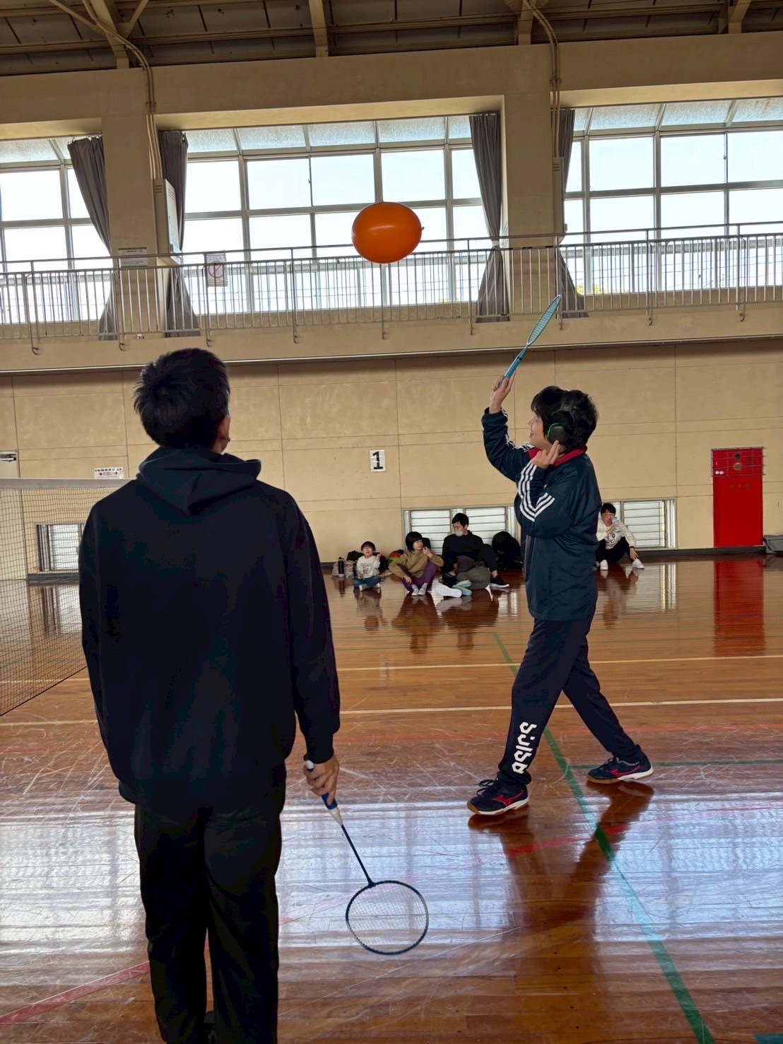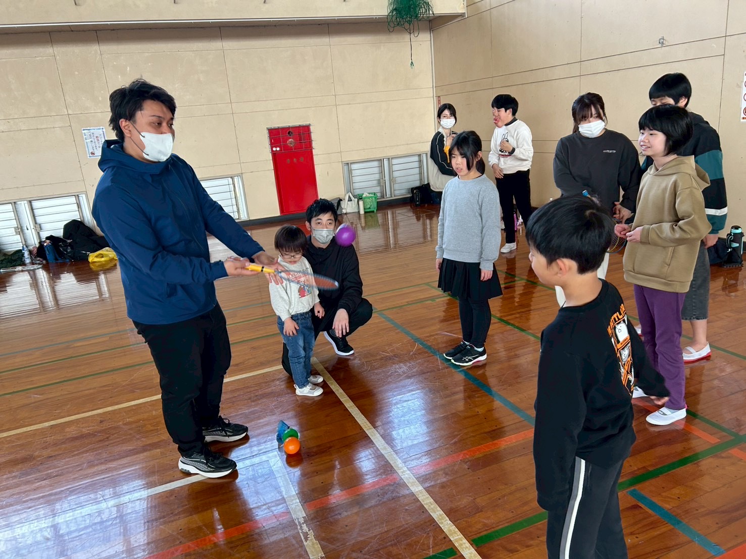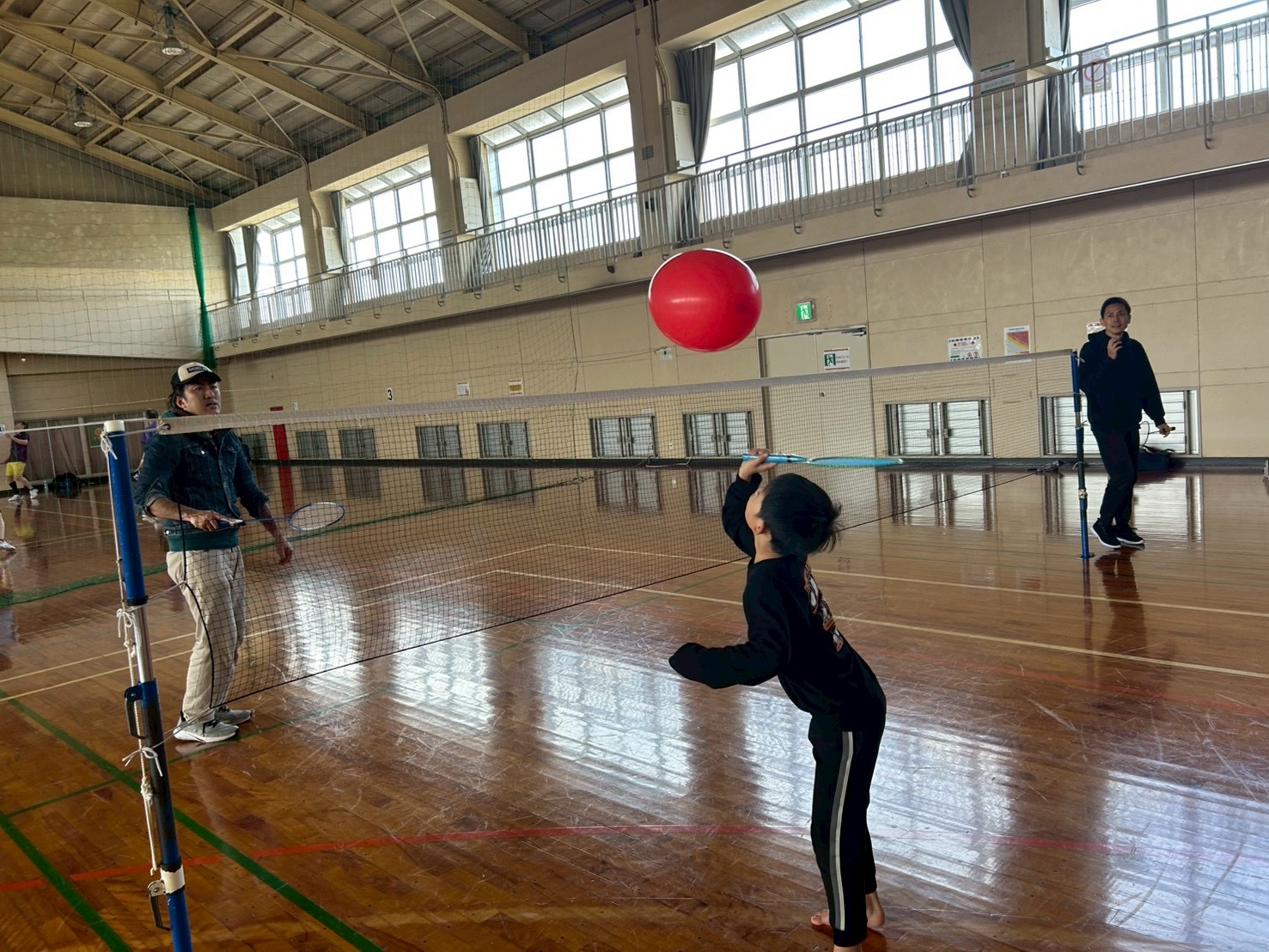 シャトルと風船を使いながら、基本動作を身につけました🙆♂️