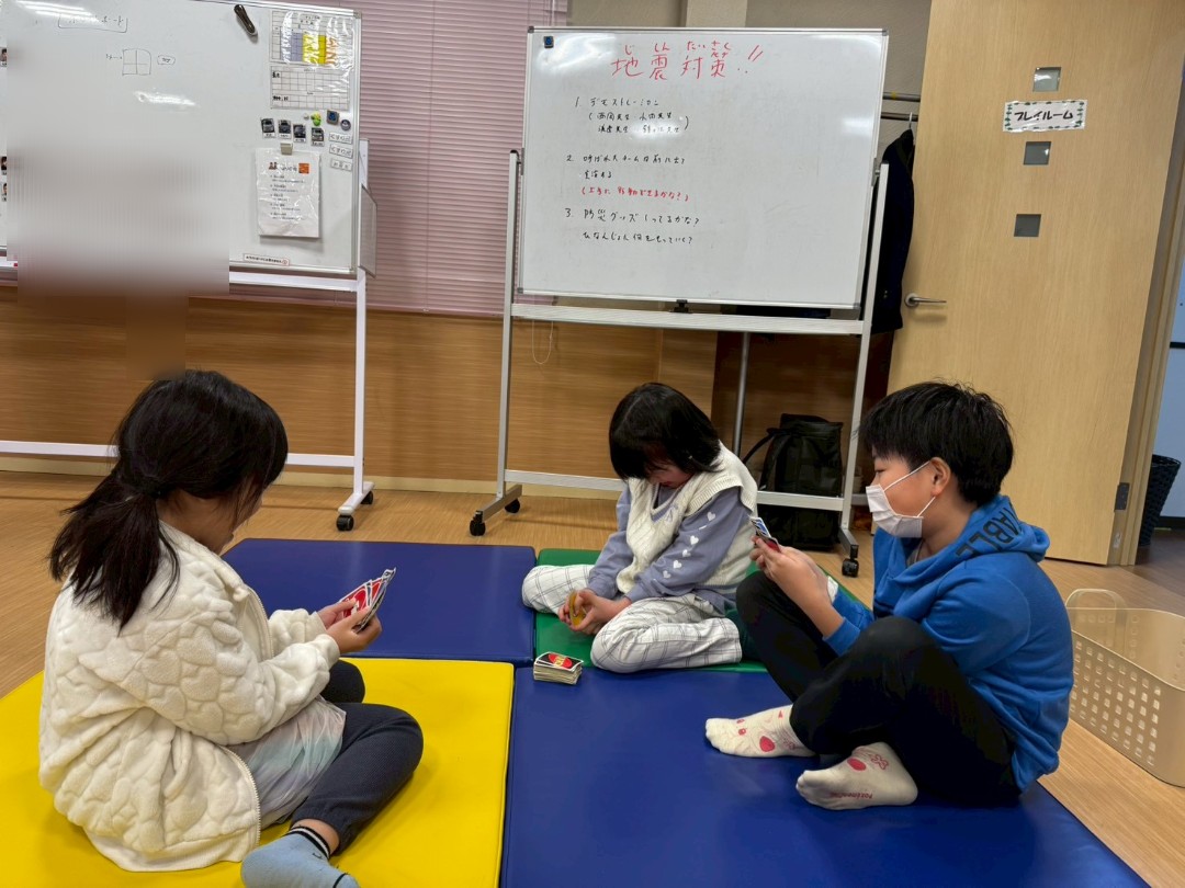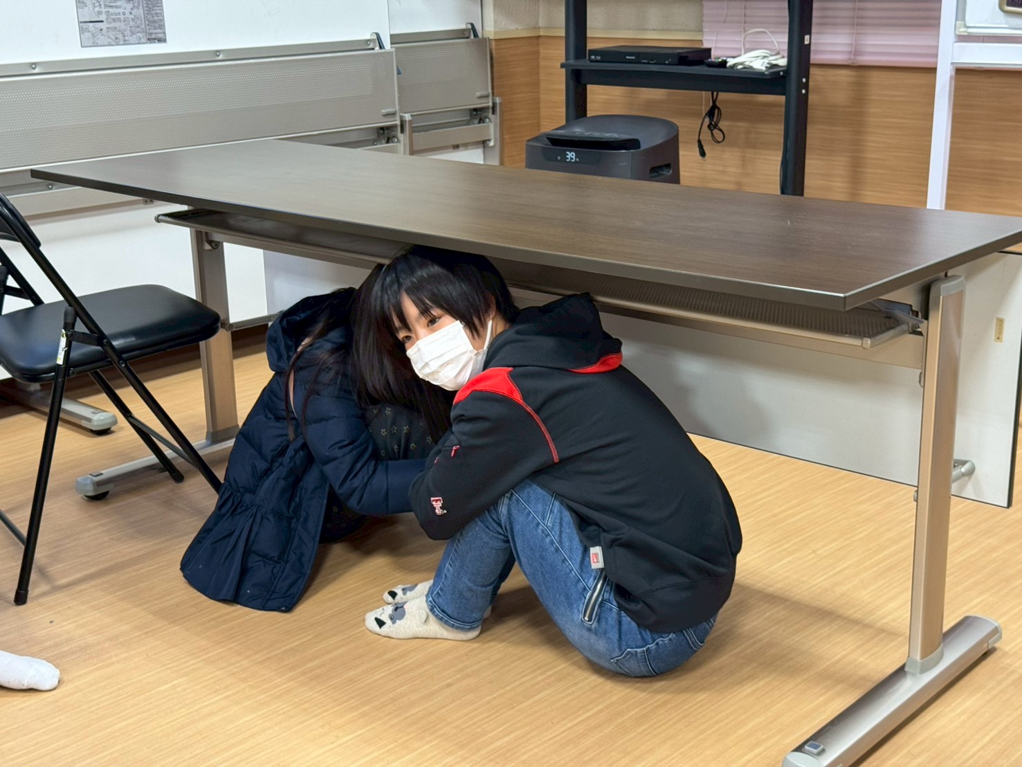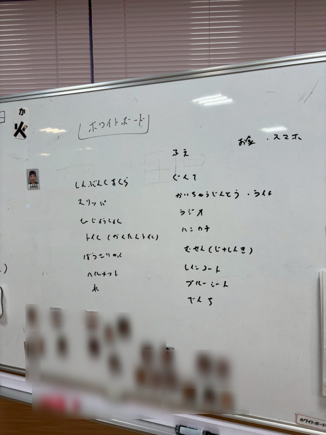 今回は、4グループに分かれて、それぞれ1チ−ムずつ前に出て地震🫨が起きたときに、どのように行動をとるのかを実演。その後、防災グッズ🔋🔦🧤⛑️が何があるのか…避難所には何を持って行けば良いのかを確認しました😊