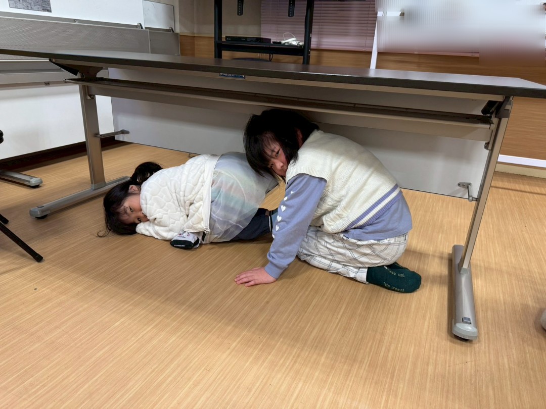 まず机のしたに隠れる。これはどう?🤔と聞くと、合ってる!挙手が多くバッチリでした✨