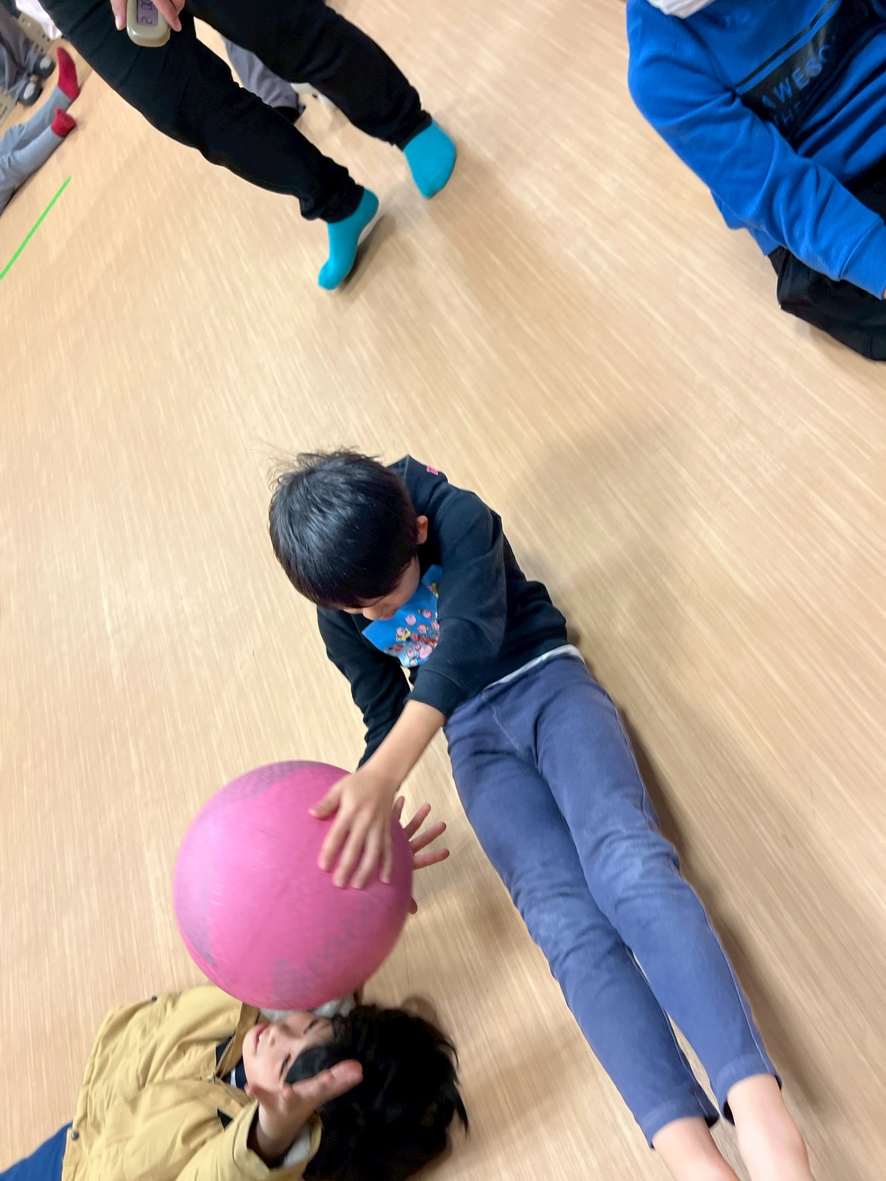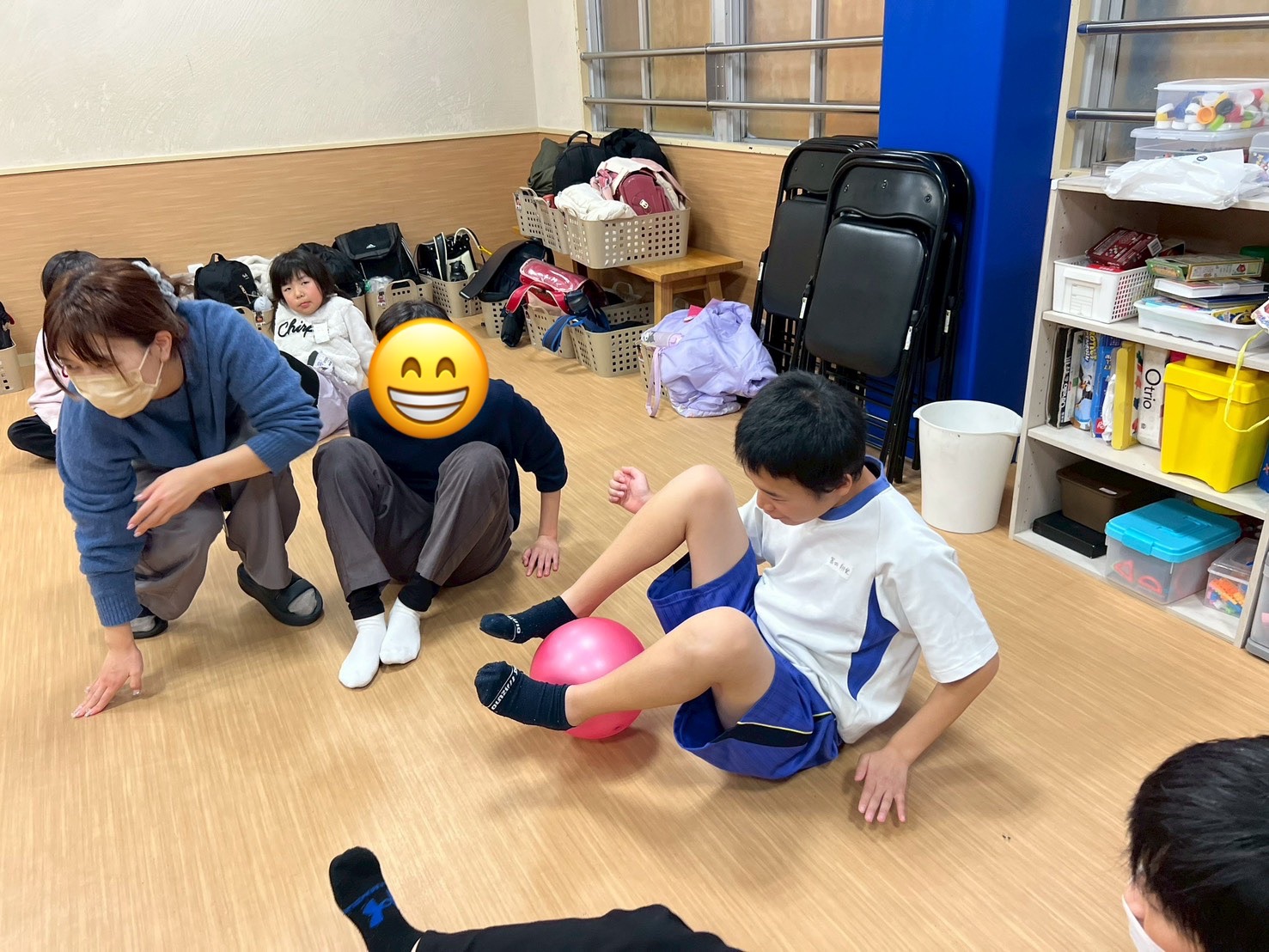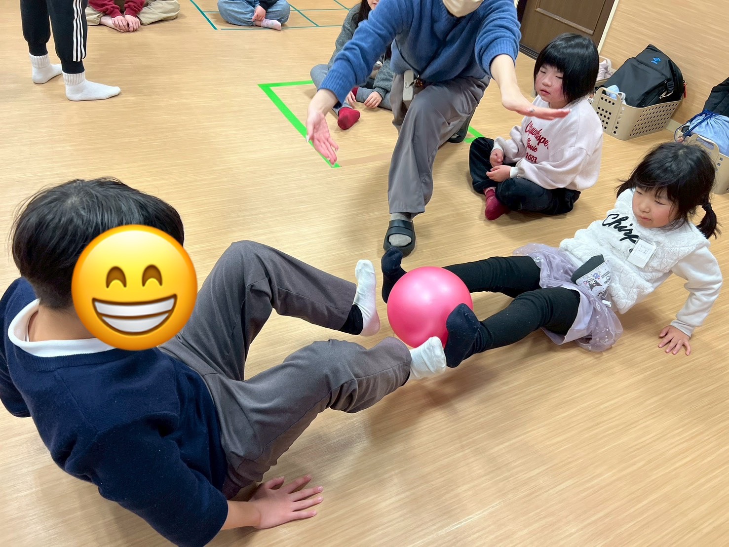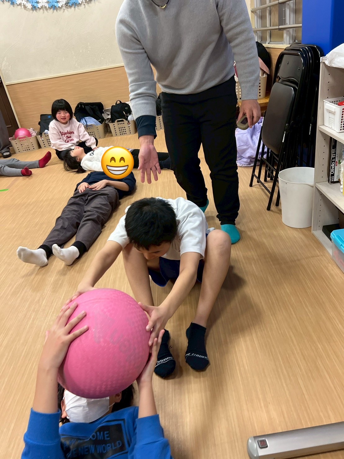 今日は天気が悪く外での活動が厳しそうでしたので、室内で出来るボールを使った体幹トレーニングを実施いたしました🙋♂️