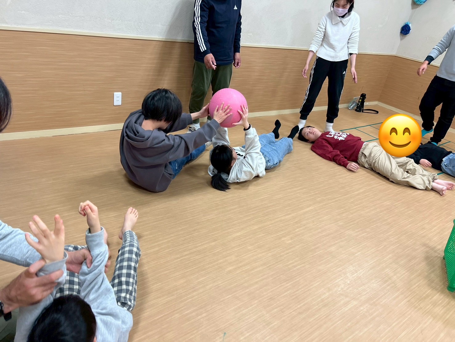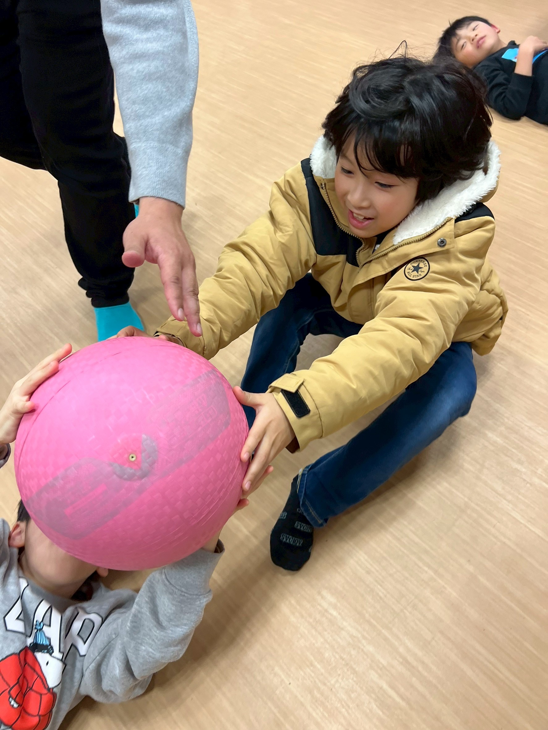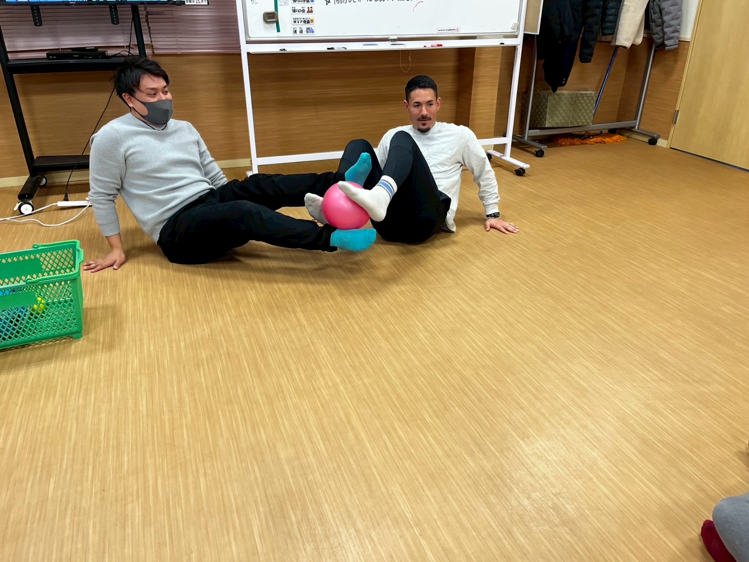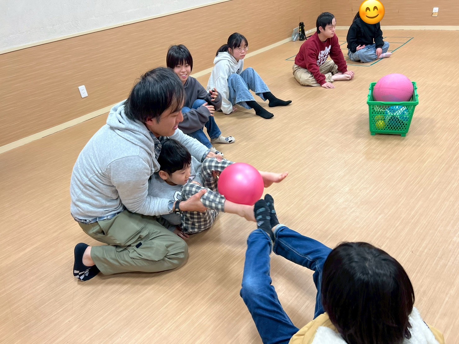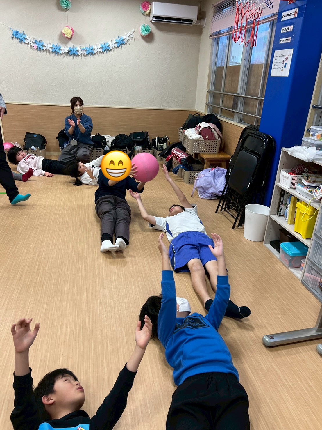 今日は天気が悪く外での活動が厳しそうでしたので、室内で出来るボールを使った体幹トレーニングを実施いたしました🙋♂️