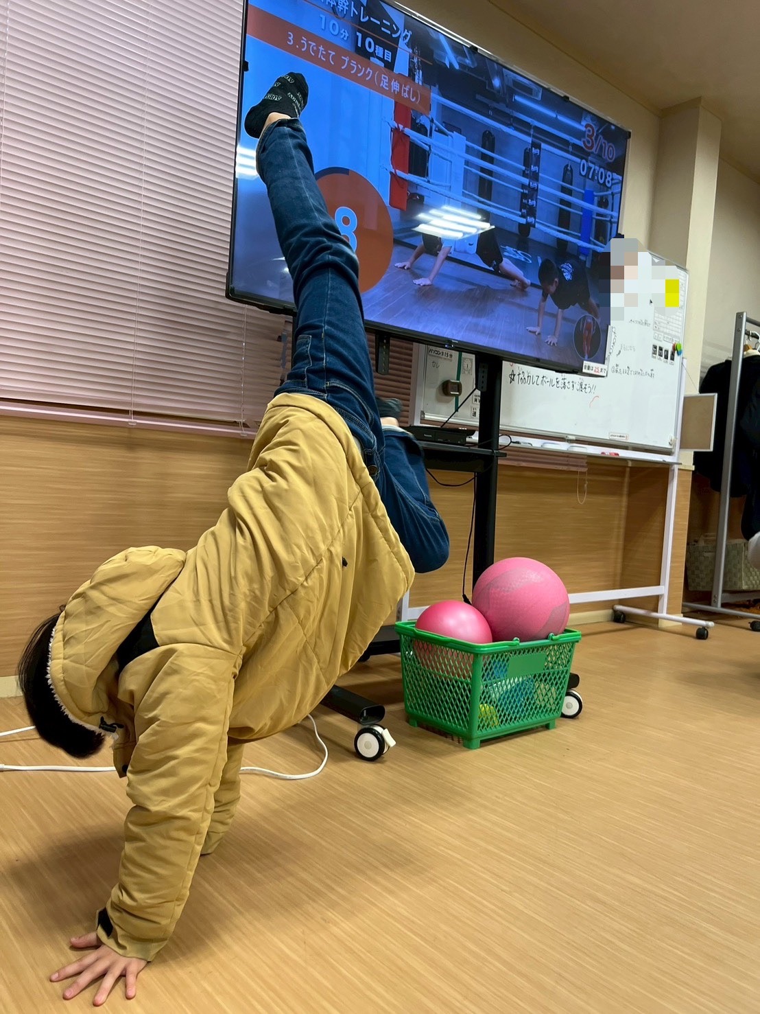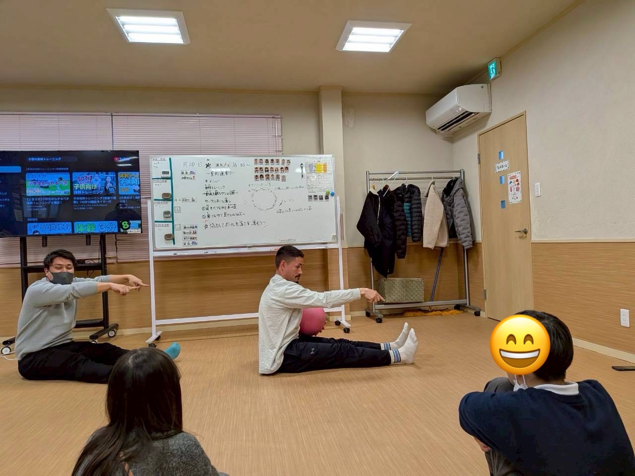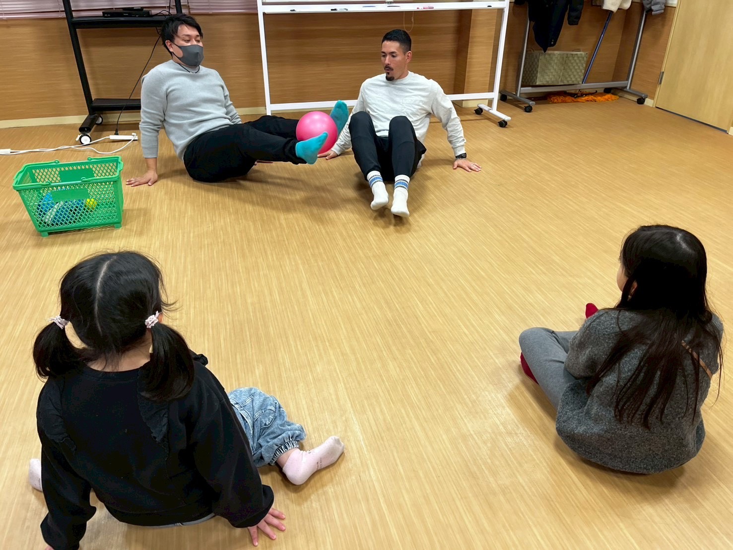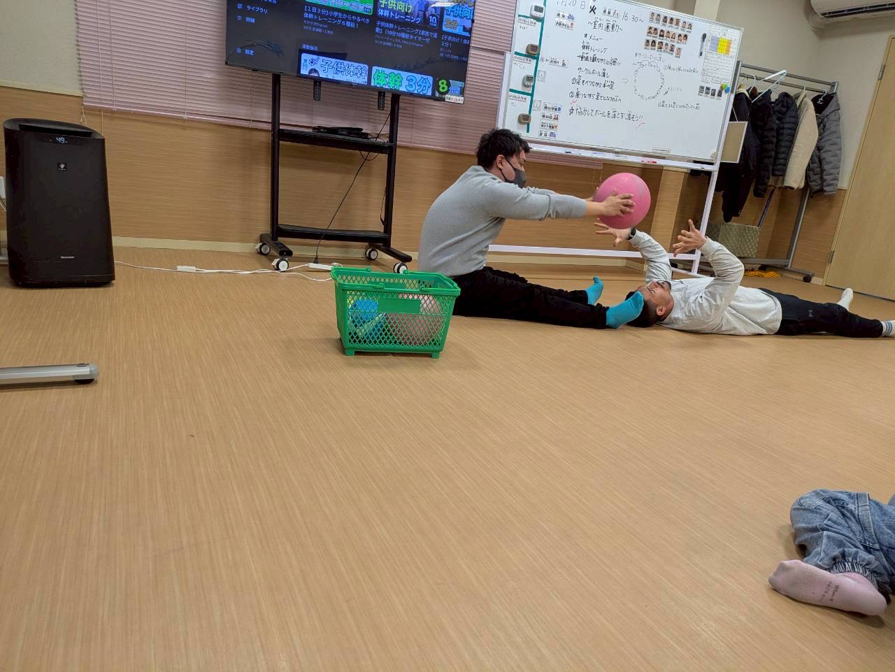 今日は天気が悪く外での活動が厳しそうでしたので、室内で出来るボールを使った体幹トレーニングを実施いたしました🙋♂️