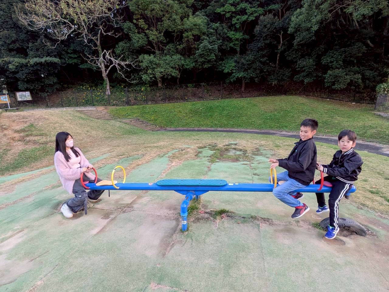 ひろ〜い芝生と遊具があり鬼ごっこやボール遊び、また遊具遊びものびのびできます🌈