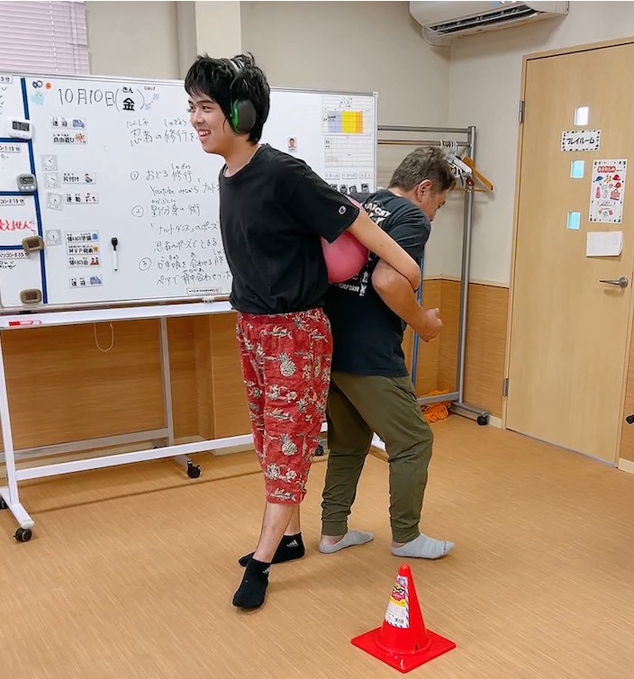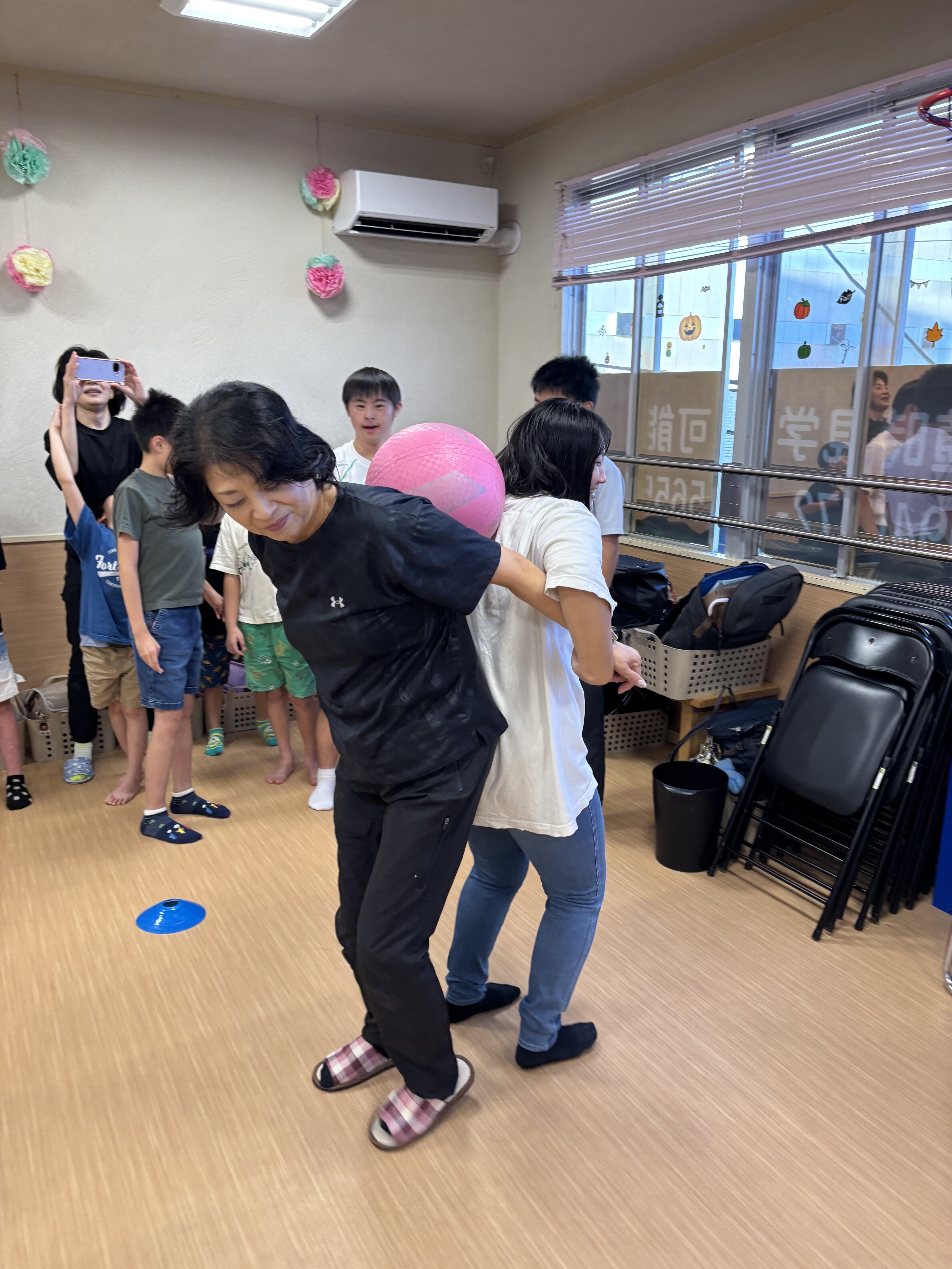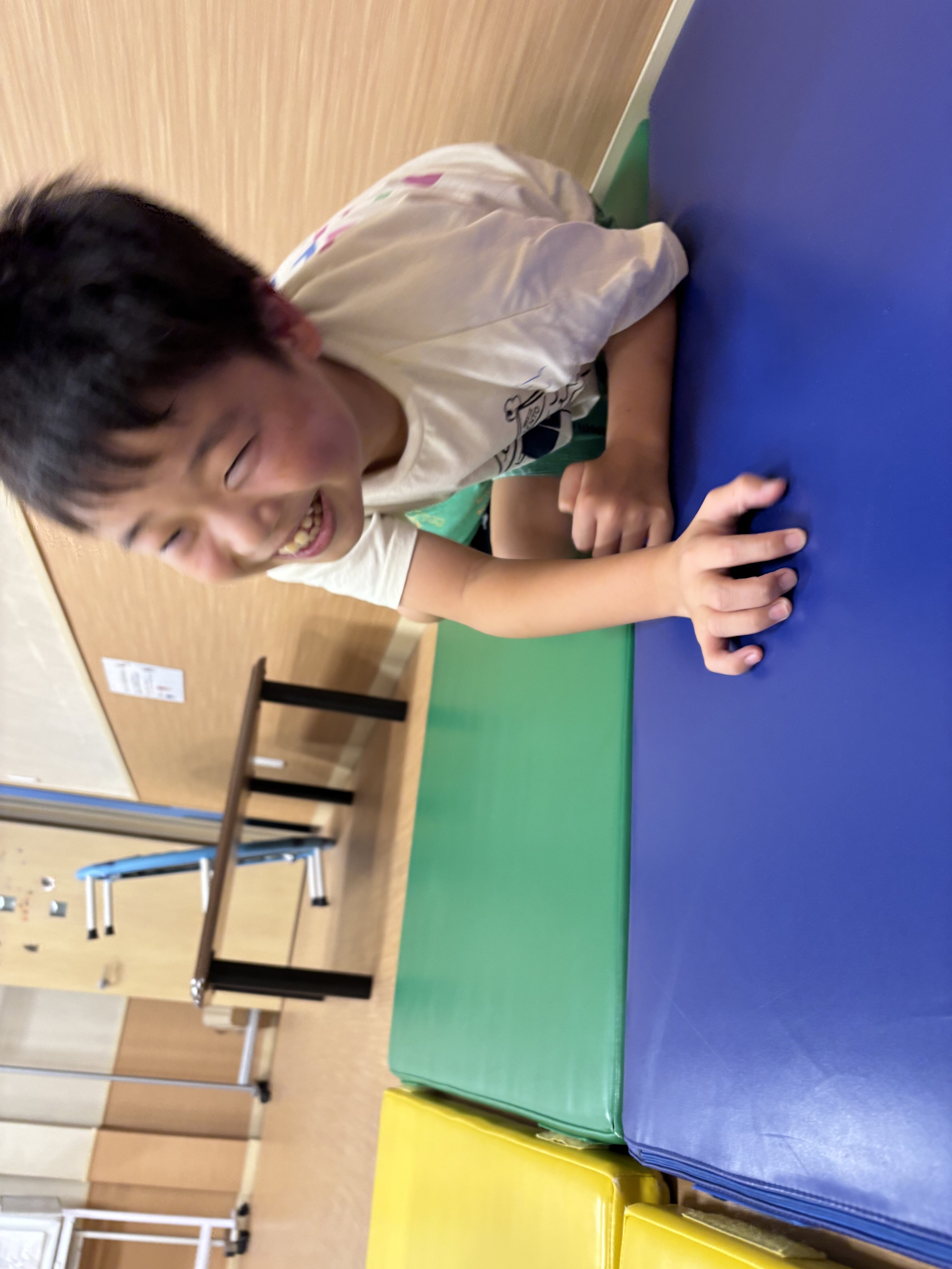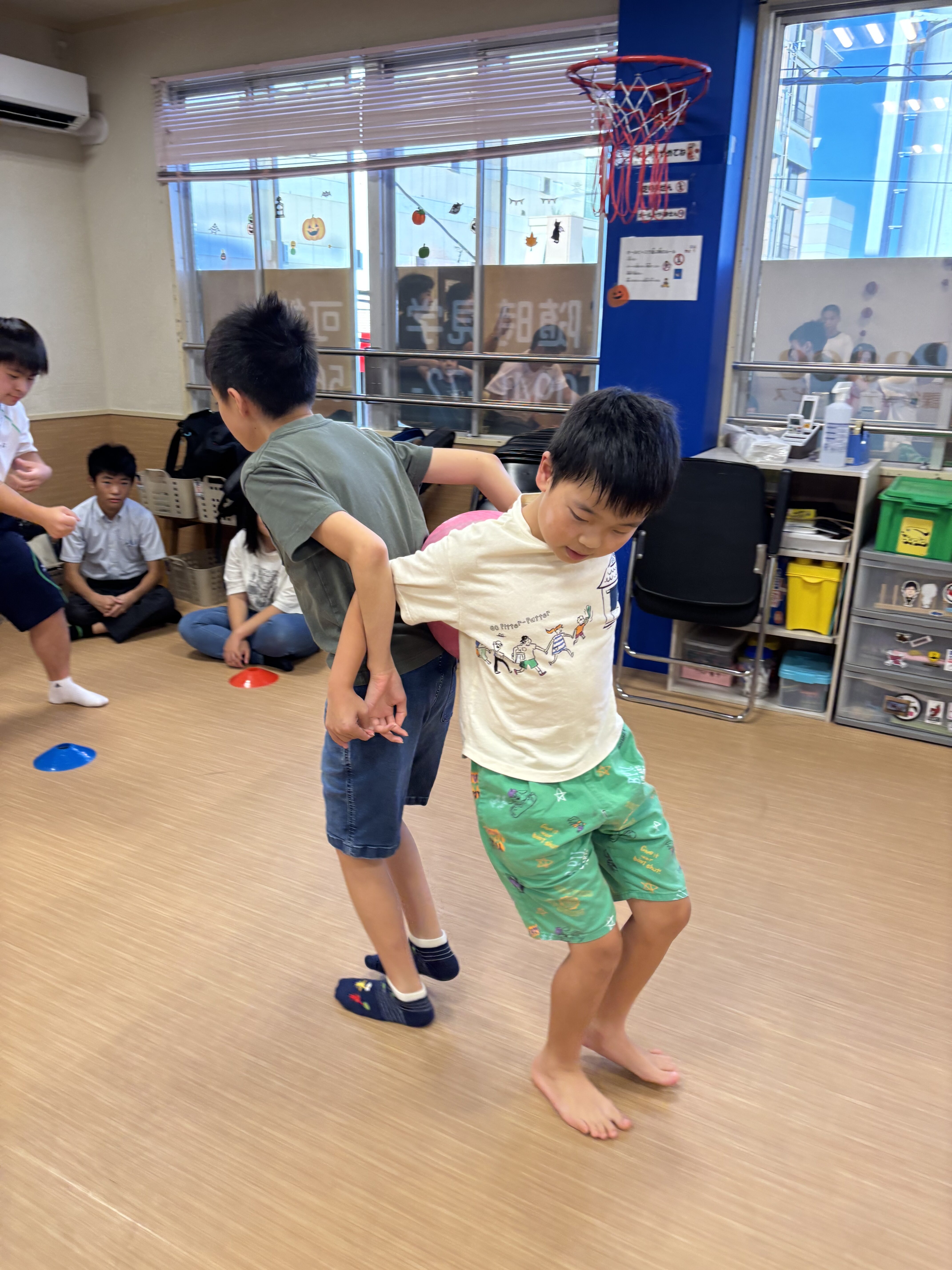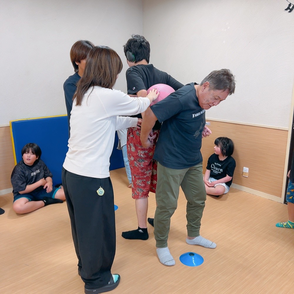 色んな忍者ポーズ🥷をとって、それを真似してもらってキープすることで、体幹筋力やバランスの向上、ボディイメージと体をイメージ通りに使うことの練習を目的としましたが、みんなが楽しそうだったので、準備していた忍者ポーズではなく、今回はナルトダンスの中の踊りをそのまま使いました🕺