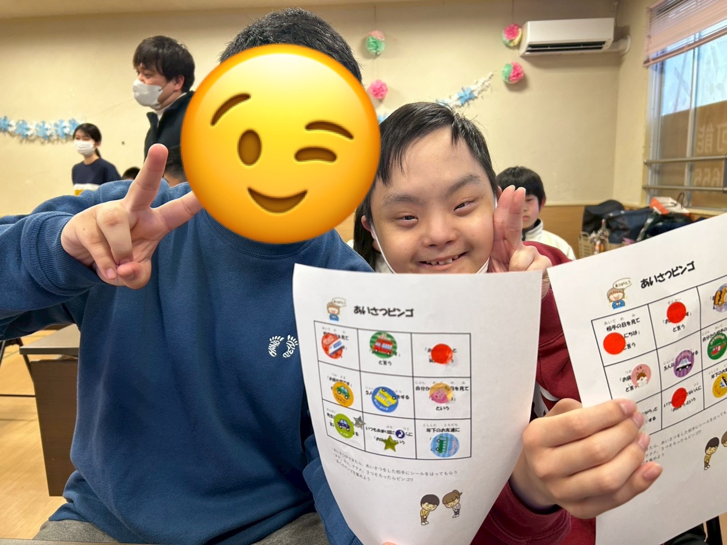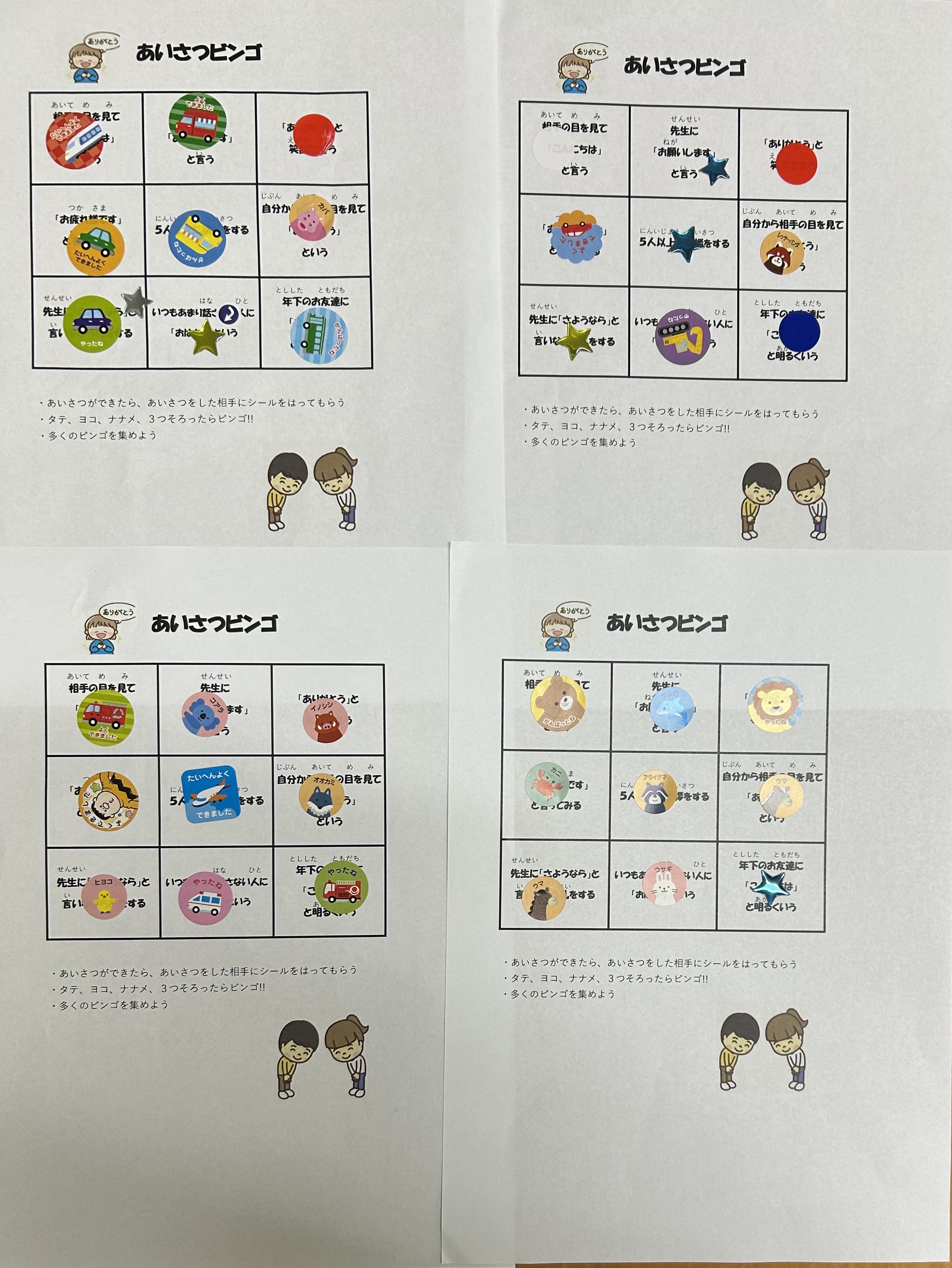 挨拶がしっかりできたら、挨拶を受けた相手がビンゴカードにシールを貼ります⭐