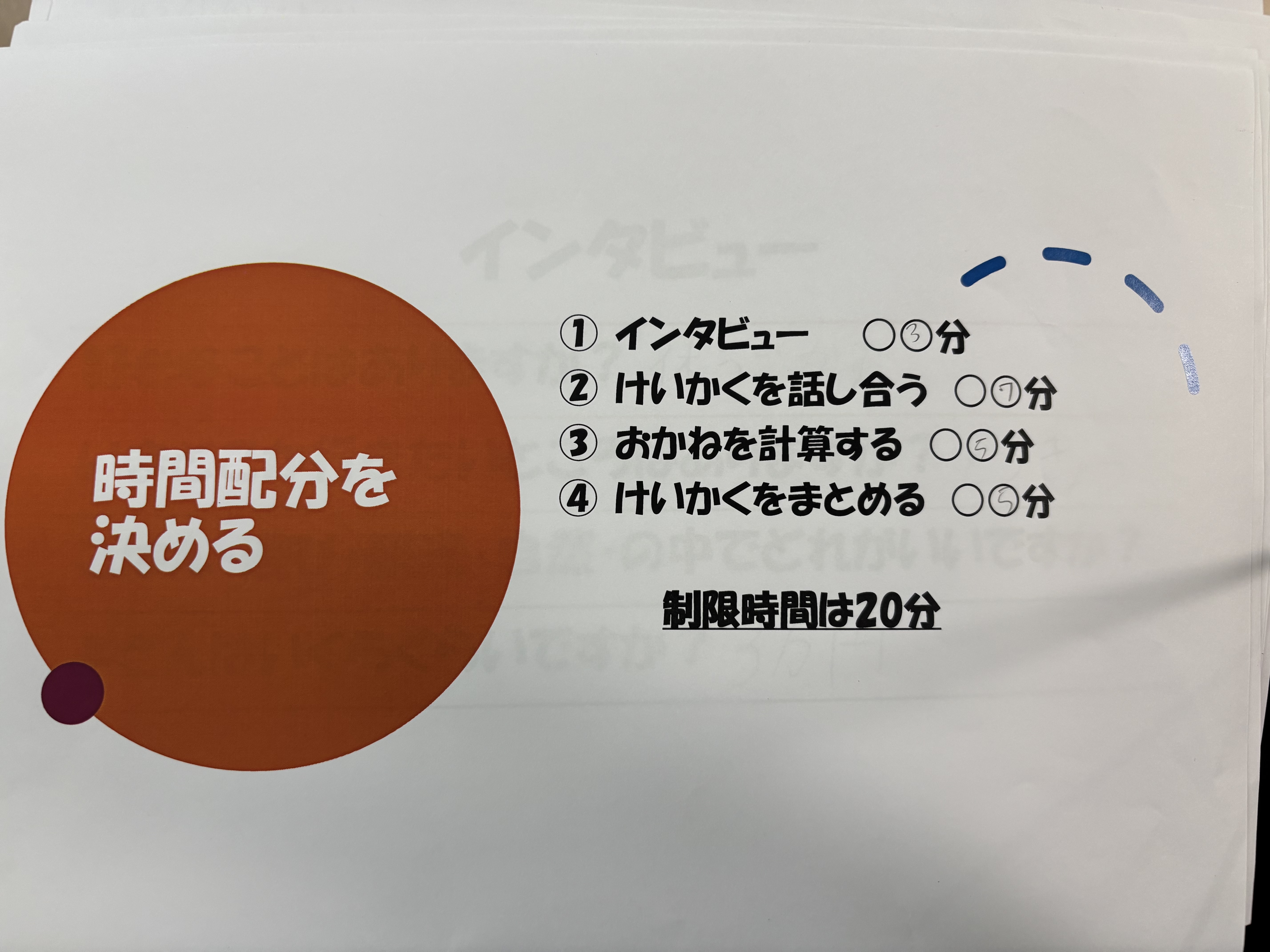 - 制限時間20分で、計画の時間配分を話し合う