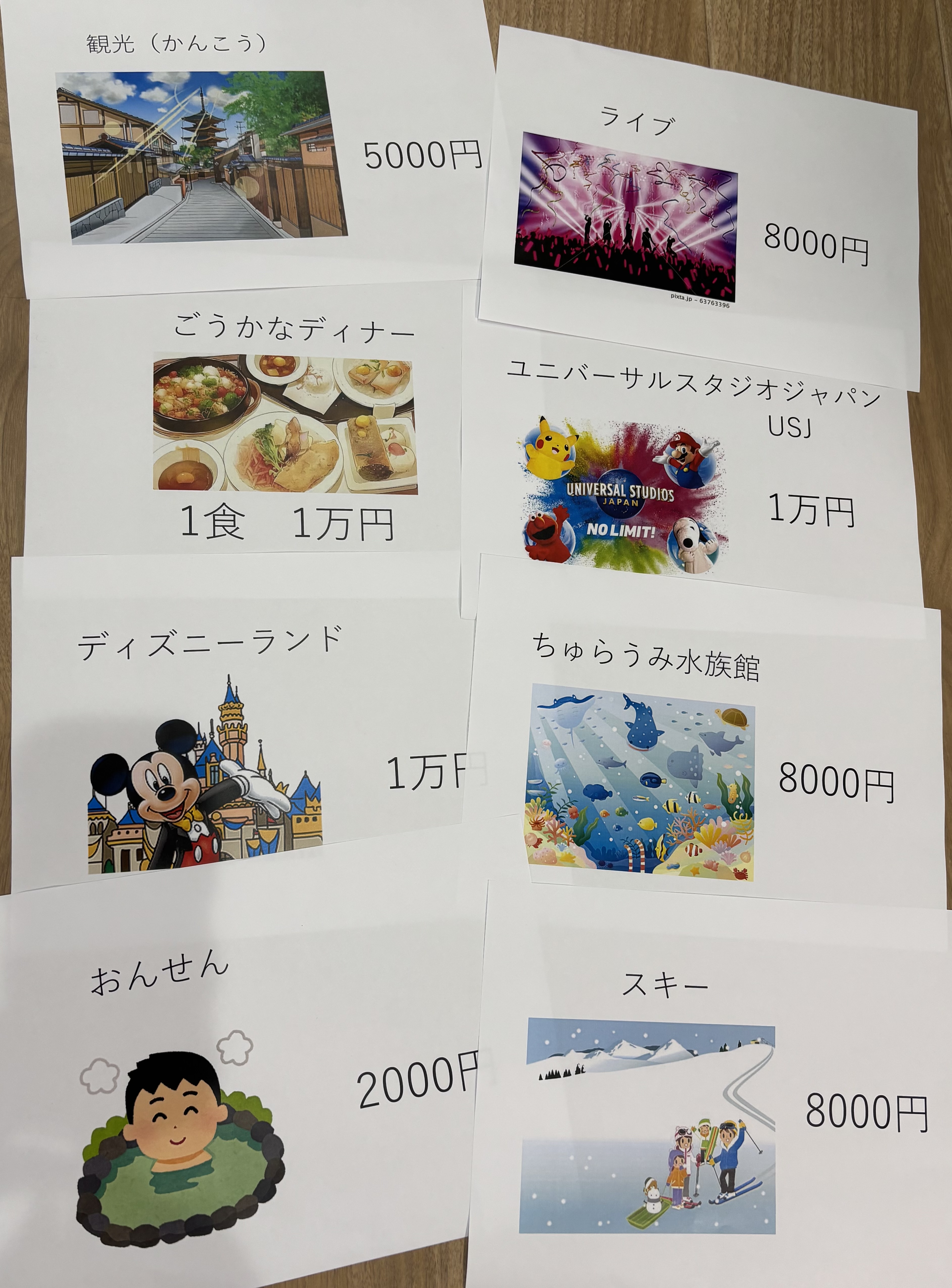 予算内で選択する活動は、算数的な思考や金銭感覚を養います。
