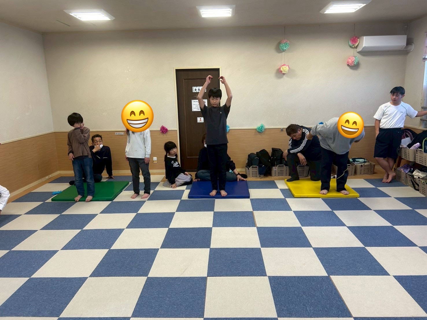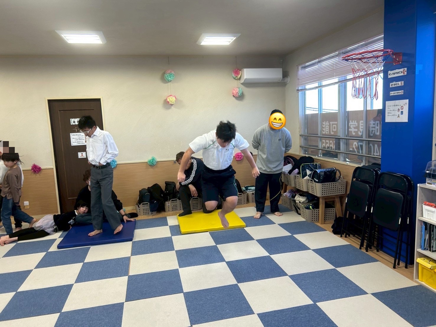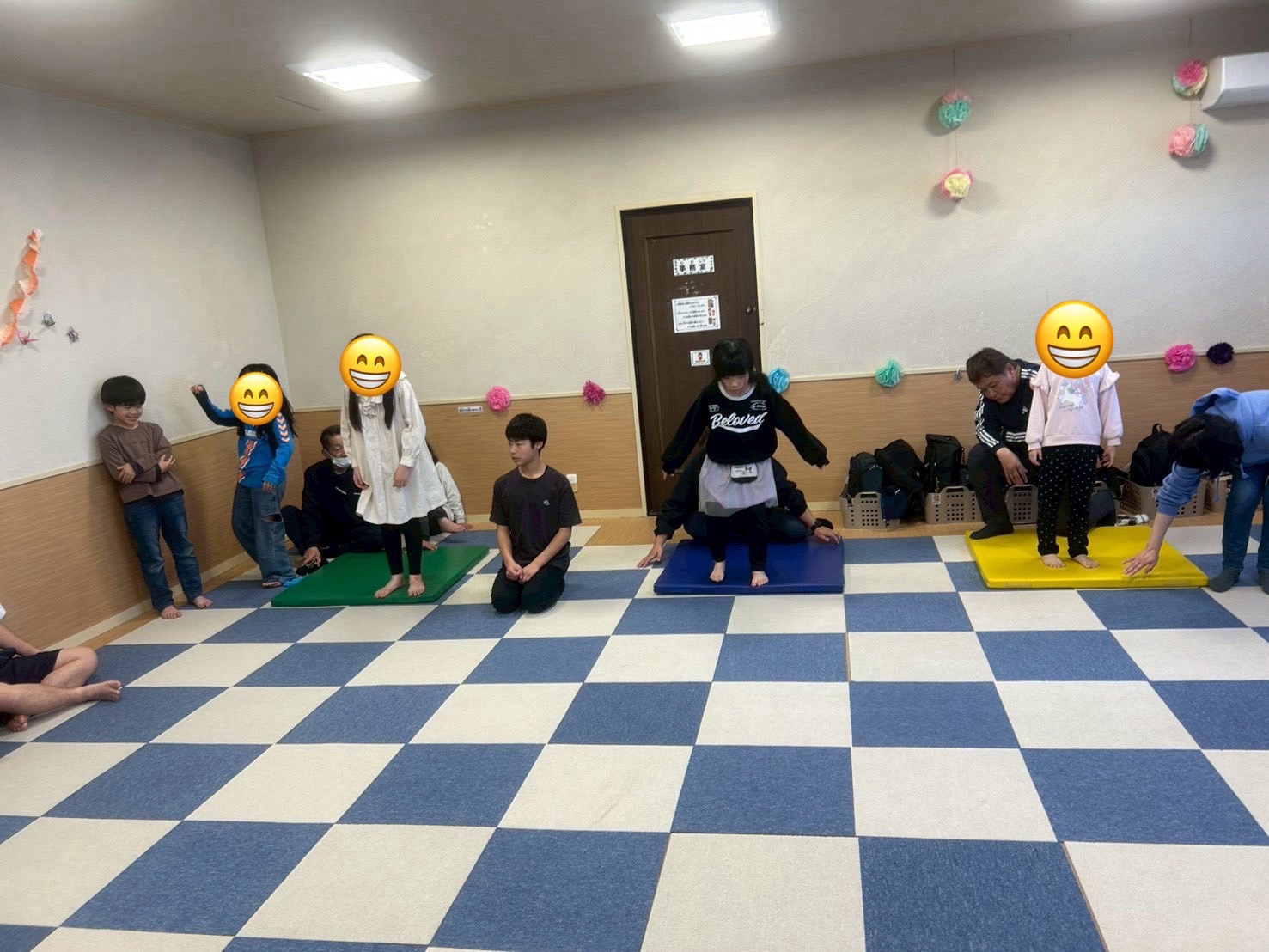 カラーマットから1つのマットを基準に何マス跳べるかで記録を取ります🙆♂️