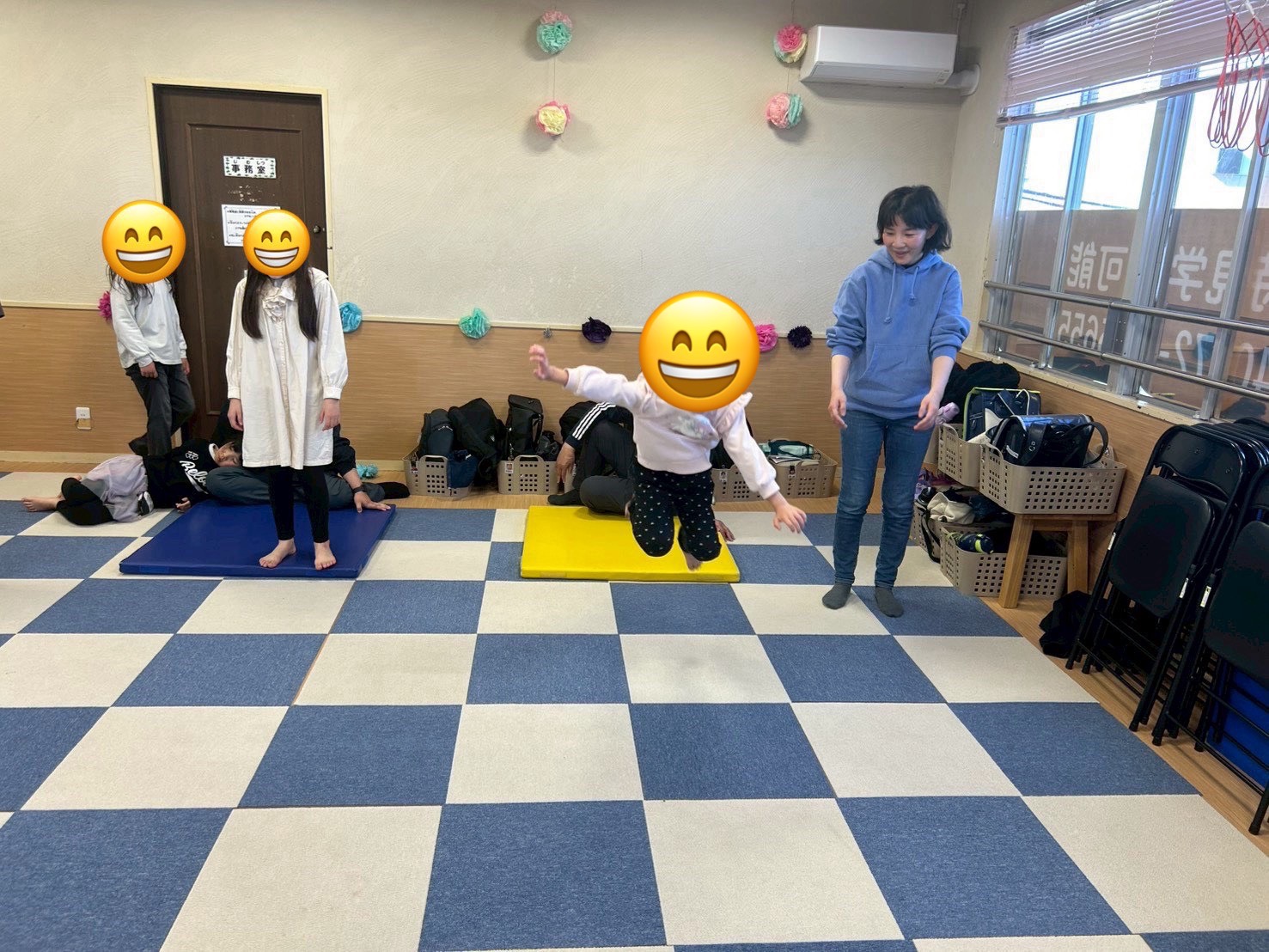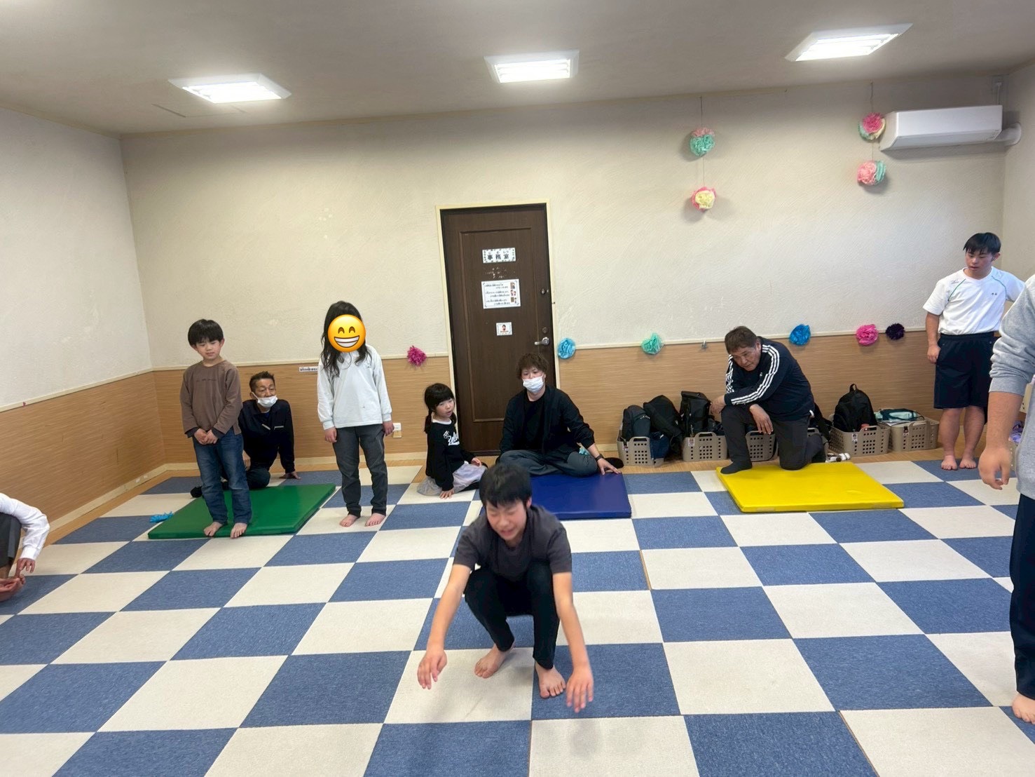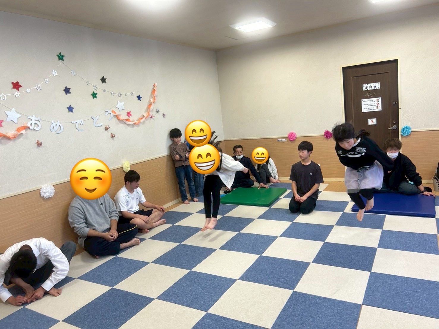 カラーマットから1つのマットを基準に何マス跳べるかで記録を取ります🙆♂️