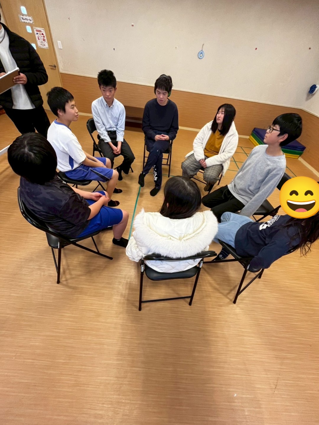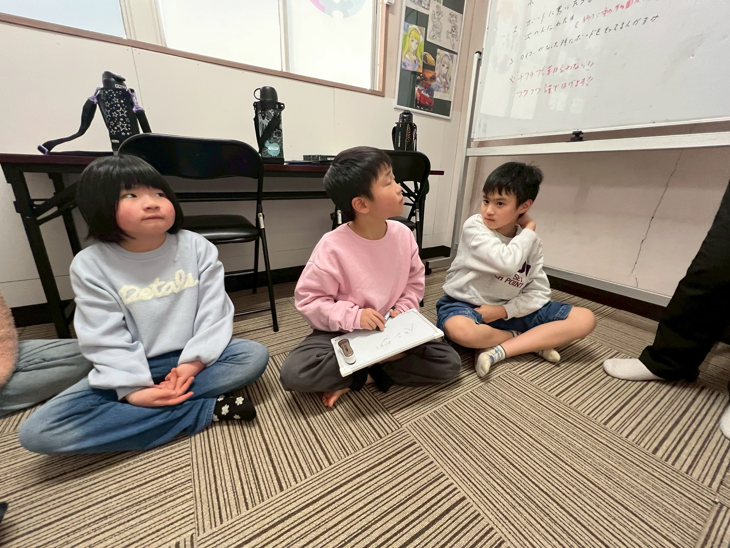 こちらは、プレイルームのグル−プです。椅子に座って、まずはスタッフの説明。