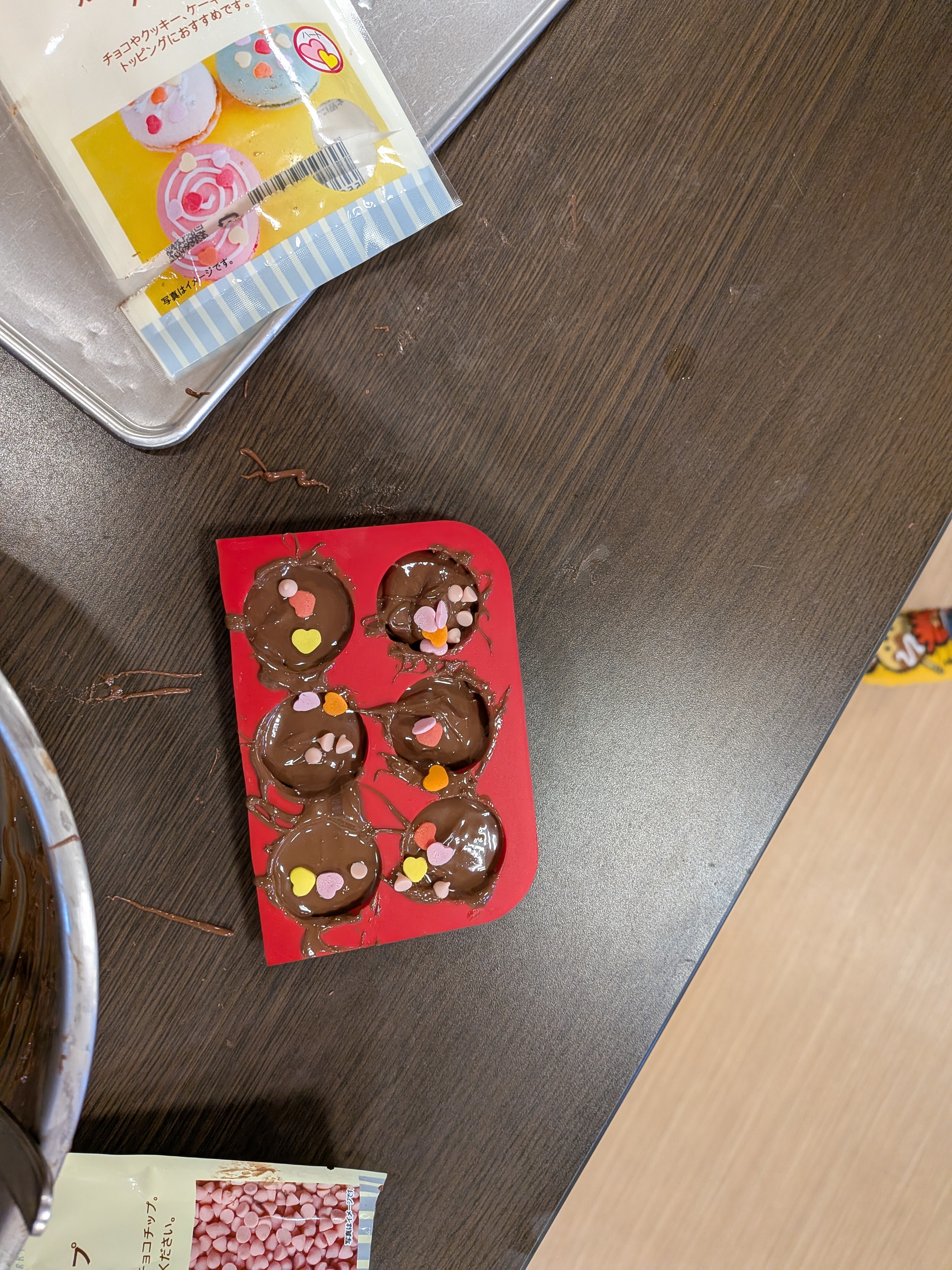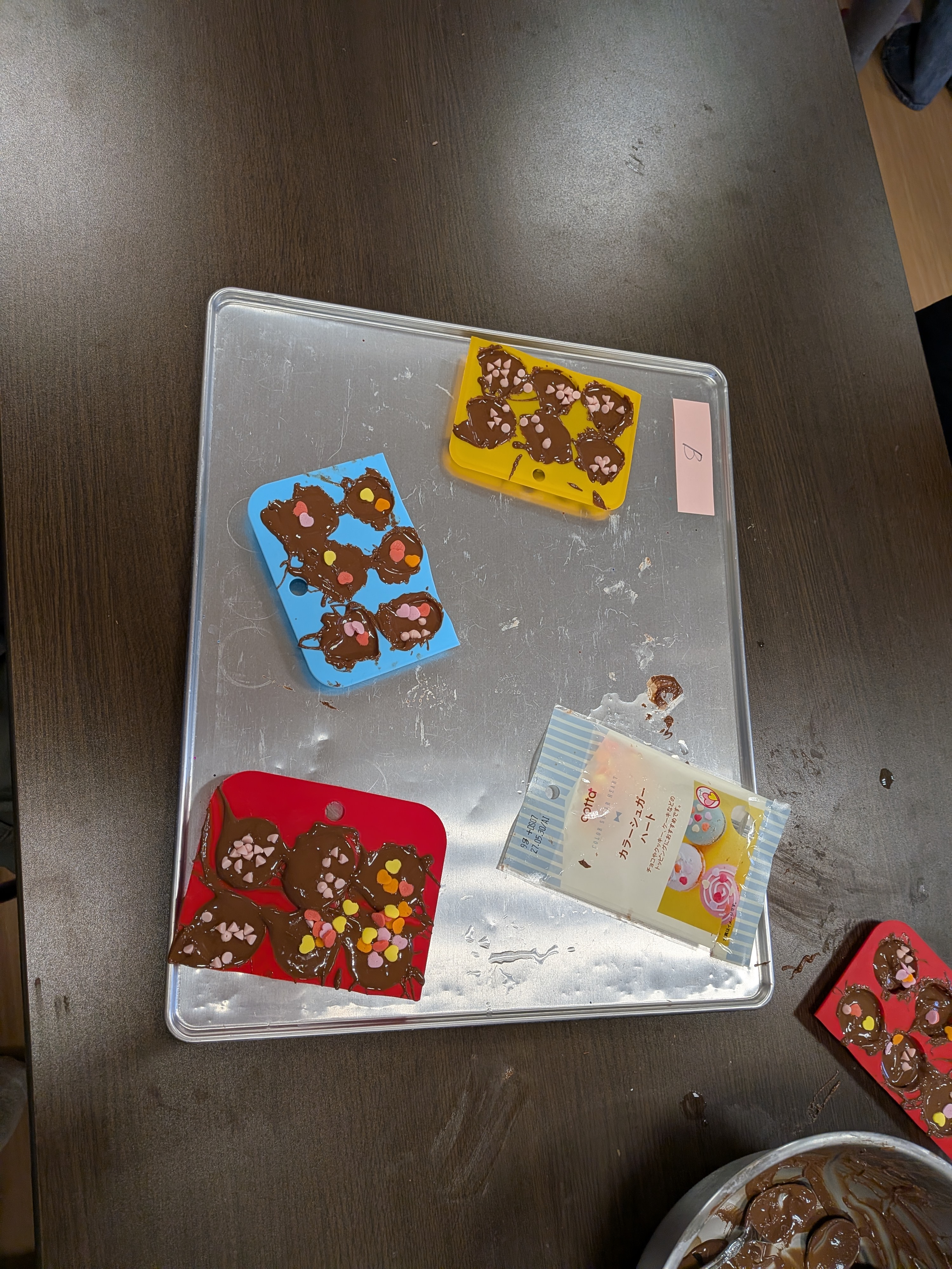 飾り用のチョコも乗せて、冷蔵庫へ✨