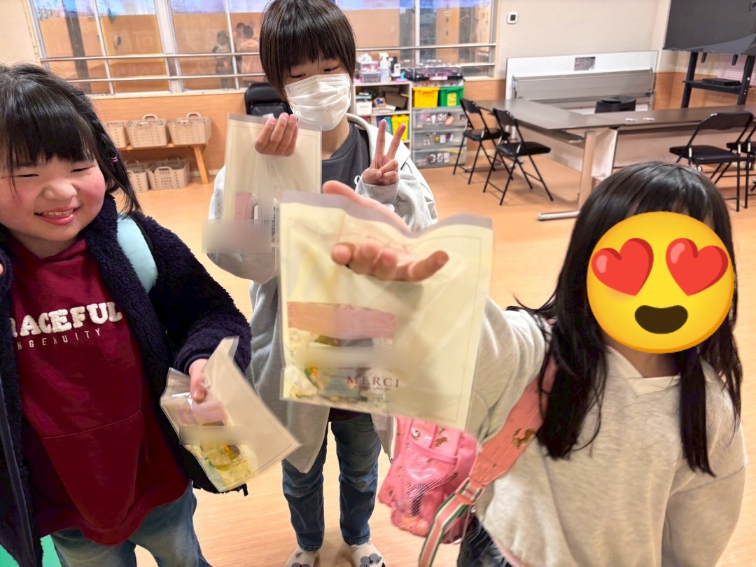 クッキングは、基本は持ち帰りはせず、その場で食べるのですが、今回は持ち帰りです✨と伝えたら、「やった〜!」と喜んでくれました✨