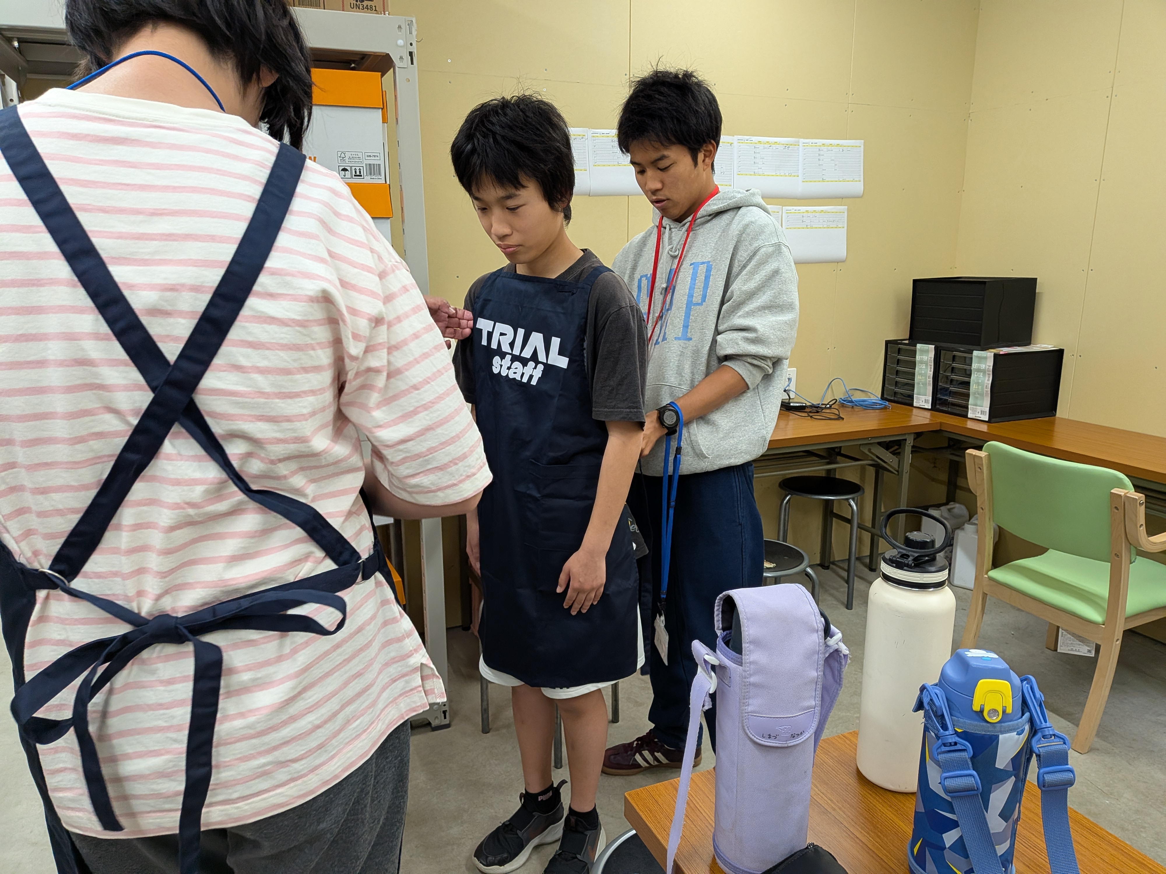 店員さんについて行き、エプロンを着ける。