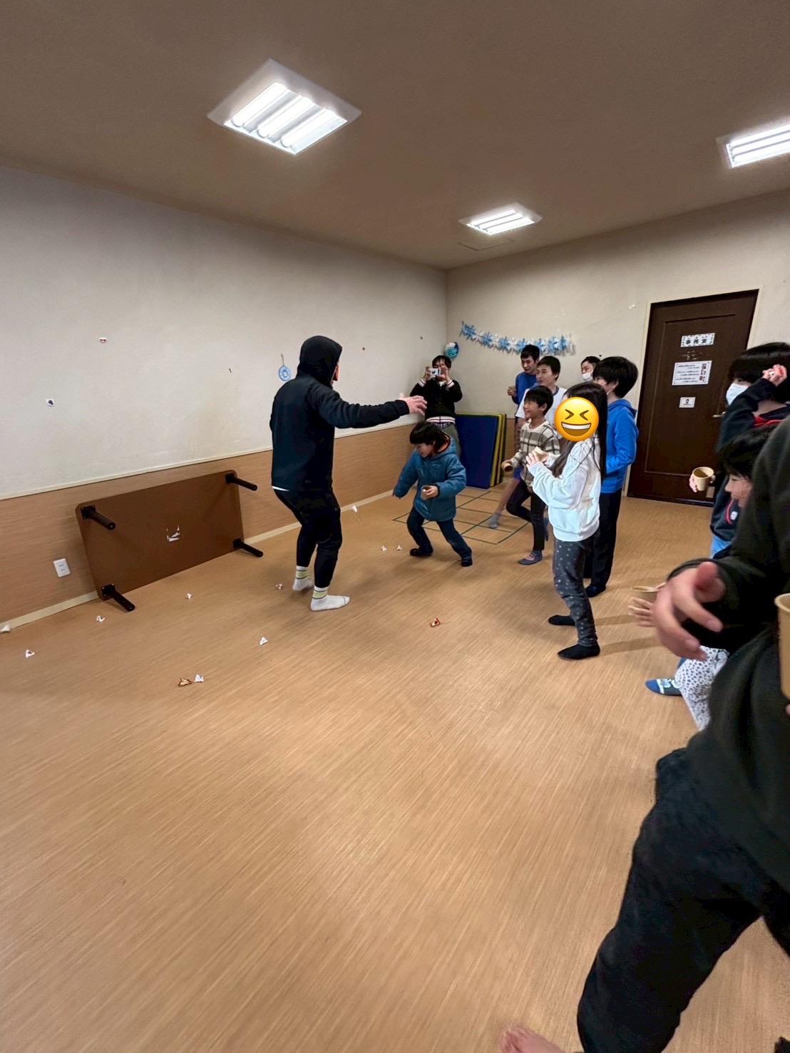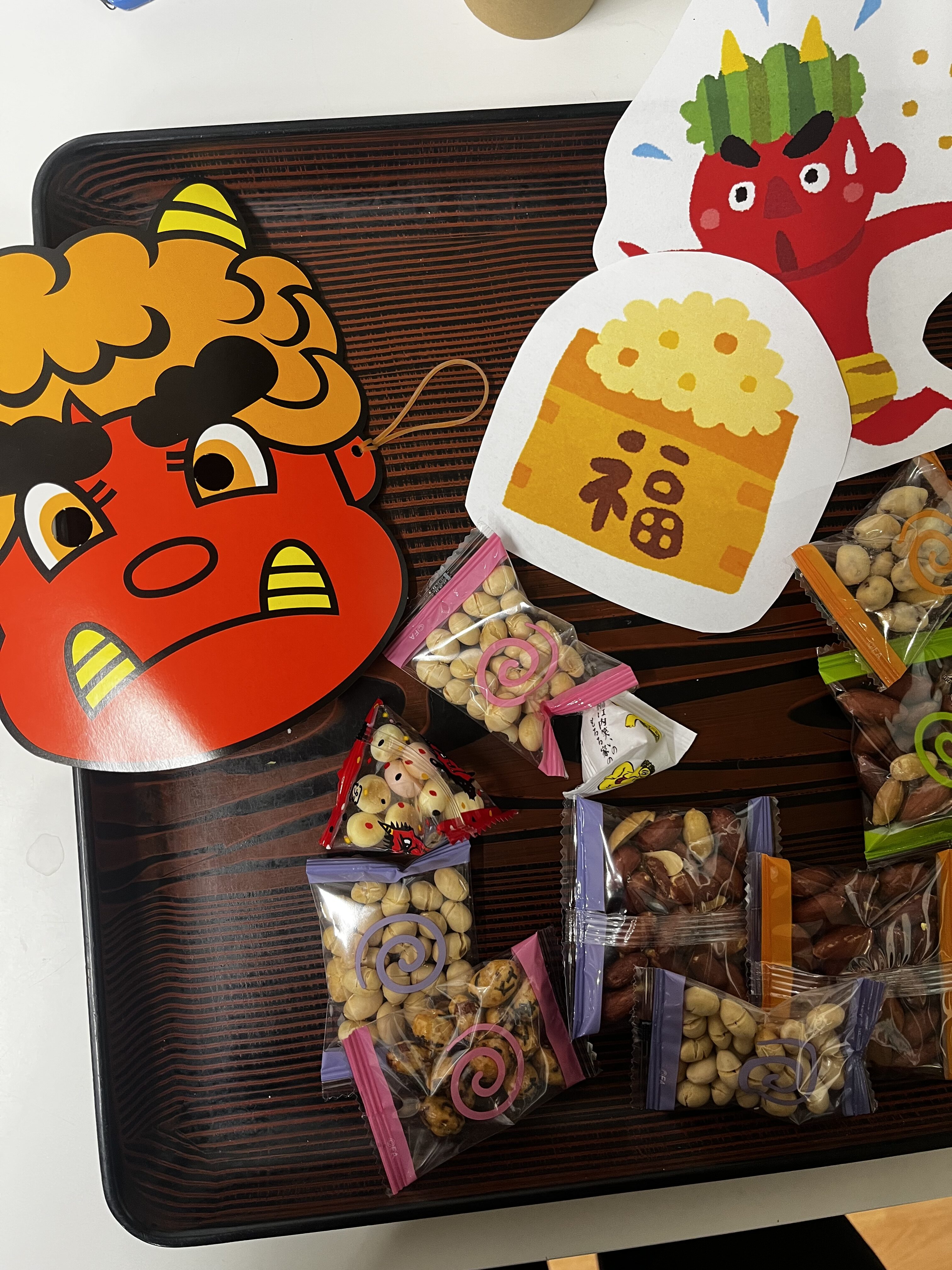 自由遊びの日でしたが、季節の行事を楽しもうということで、ミニ豆まきを実施しました〜👹