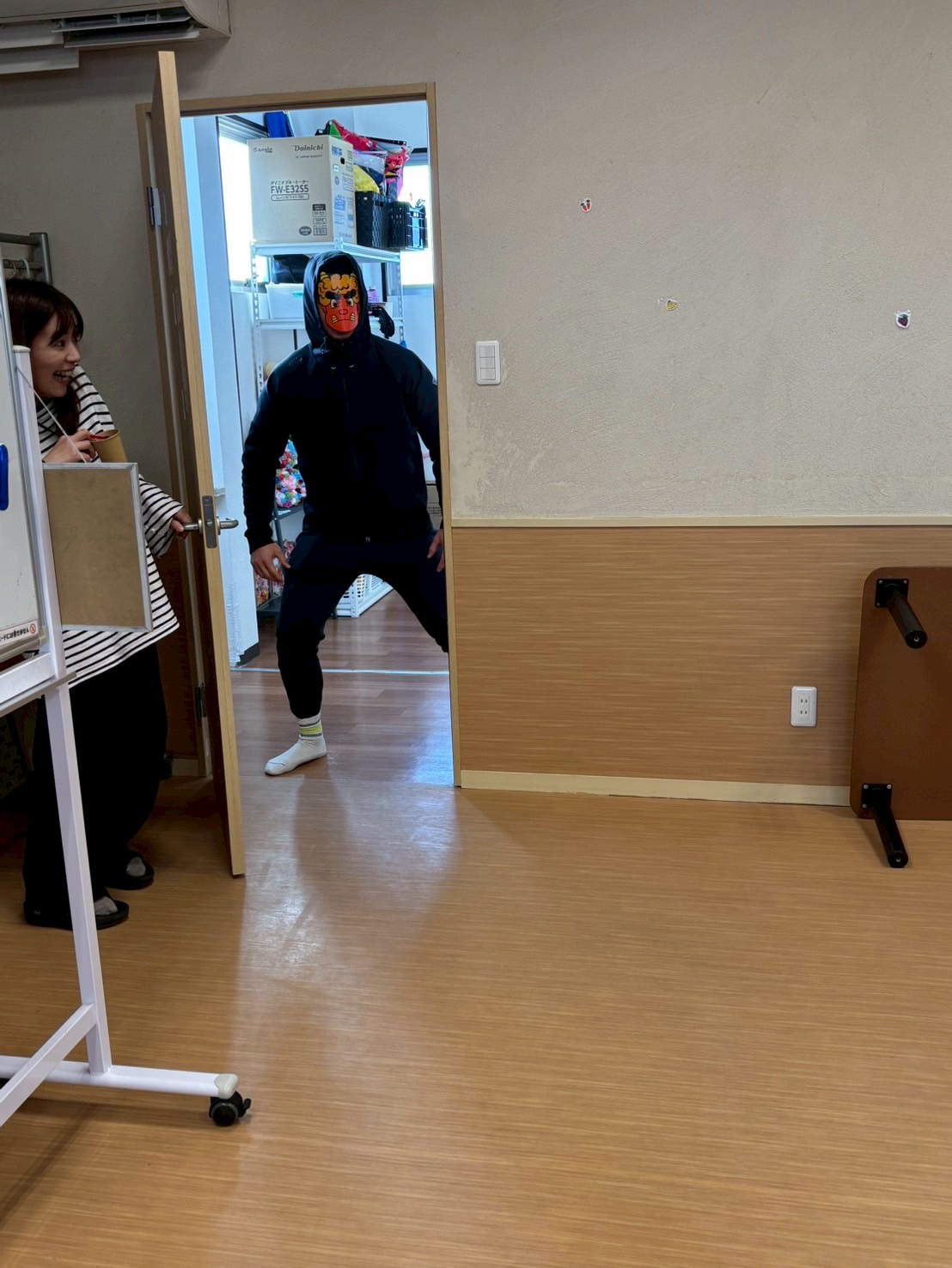 ひと通り、節分知識クイズをした後は豆まきスタート▶️👹