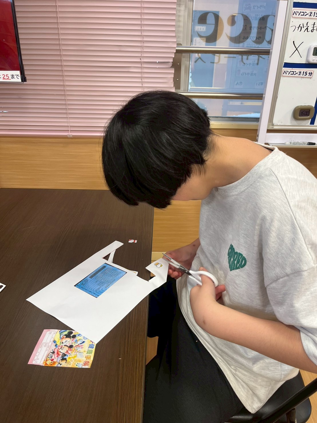ハサミ✂️で上手に切って、ラミネートしてました✨