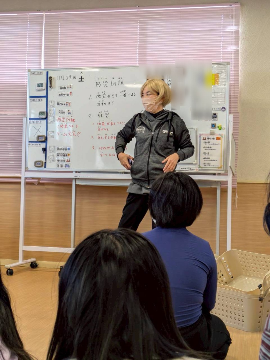 午前中に、簡単に地震が起きた時の行動を説明。何と!😳キャサリン先生が来て下さり、説明と午後からの訓練とゲ−ム大会🎮に参加してくれました✨